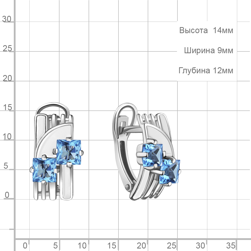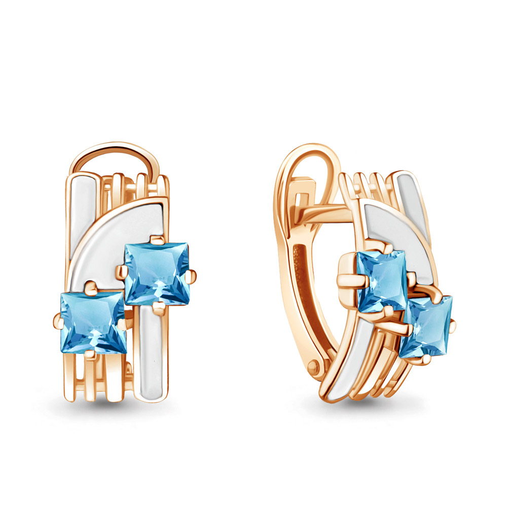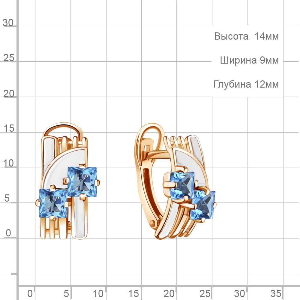 4465305 Серьги из Серебра с топазами свисс блю, эмалью из коллекции "Rio"