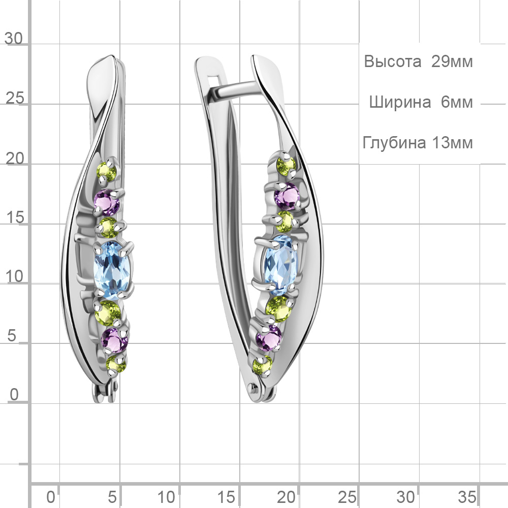 4466140 Серьги из Серебра с аметистами, топазами свисс блю, хризолитами из коллекции "Аура"