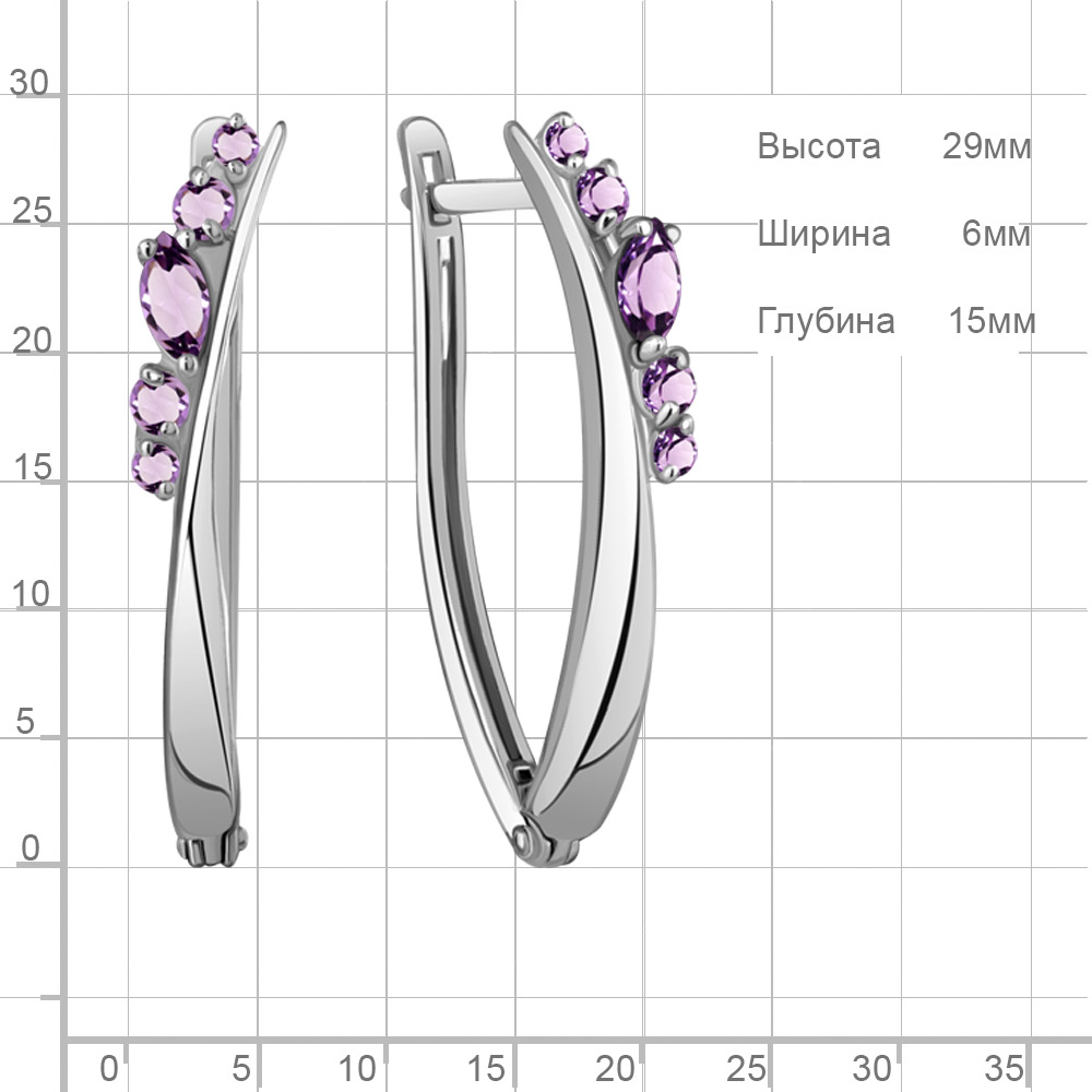 4466204 Серьги из Серебра с аметистами из коллекции "Аура"