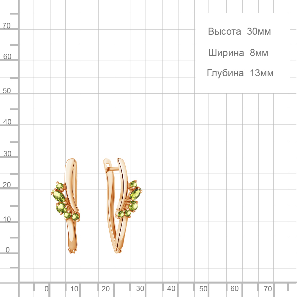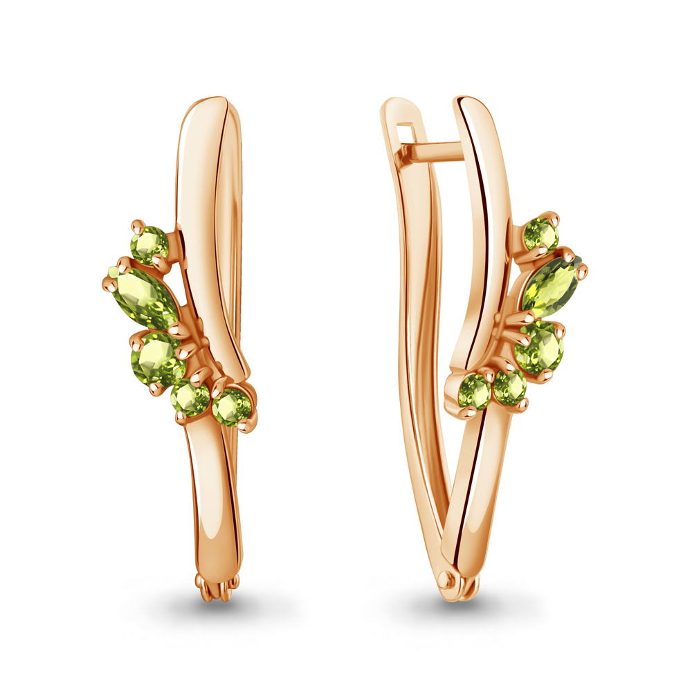 4466507 Серьги из Серебра с хризолитами из коллекции "Аура"