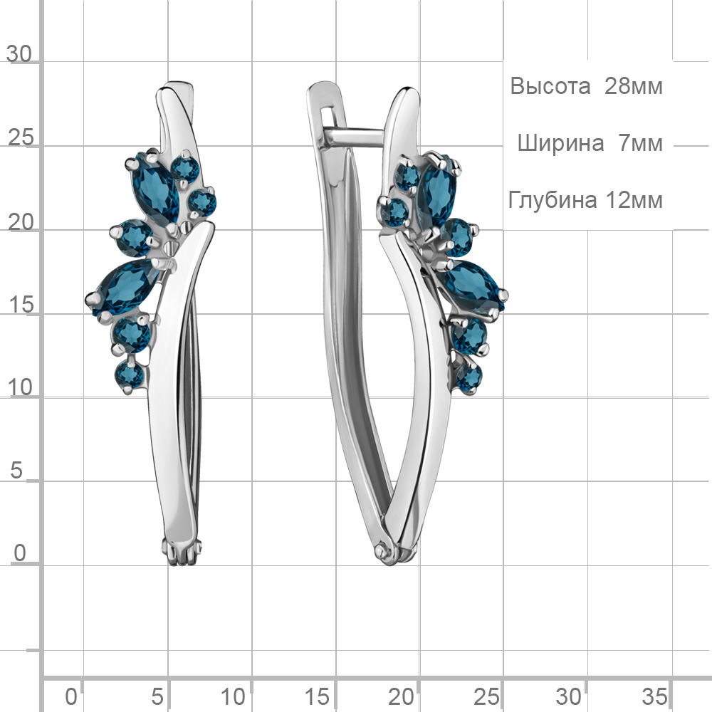 4466708 Серьги из Серебра с топазами лондон блю из коллекции "Аура"