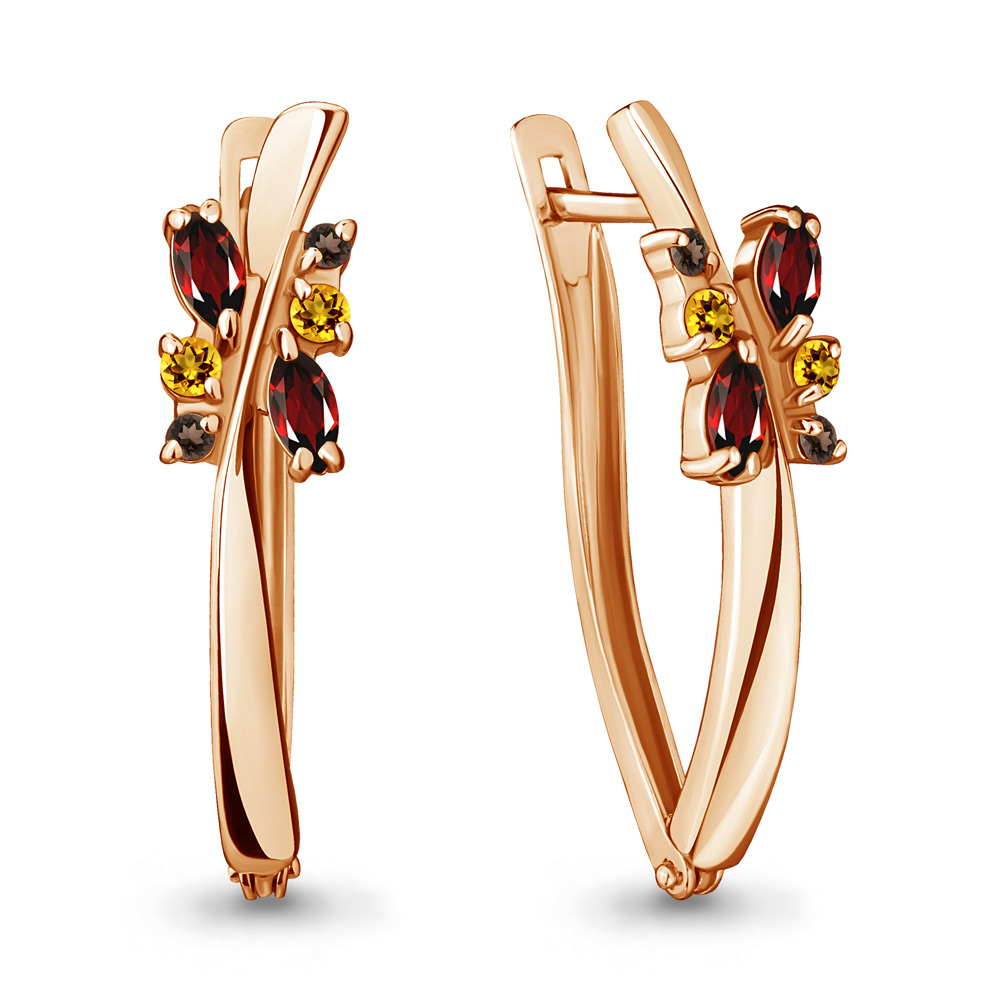 4467347 Серьги из Серебра с гранатами, кварцами дымчатыми, цитринами из коллекции "Аура"