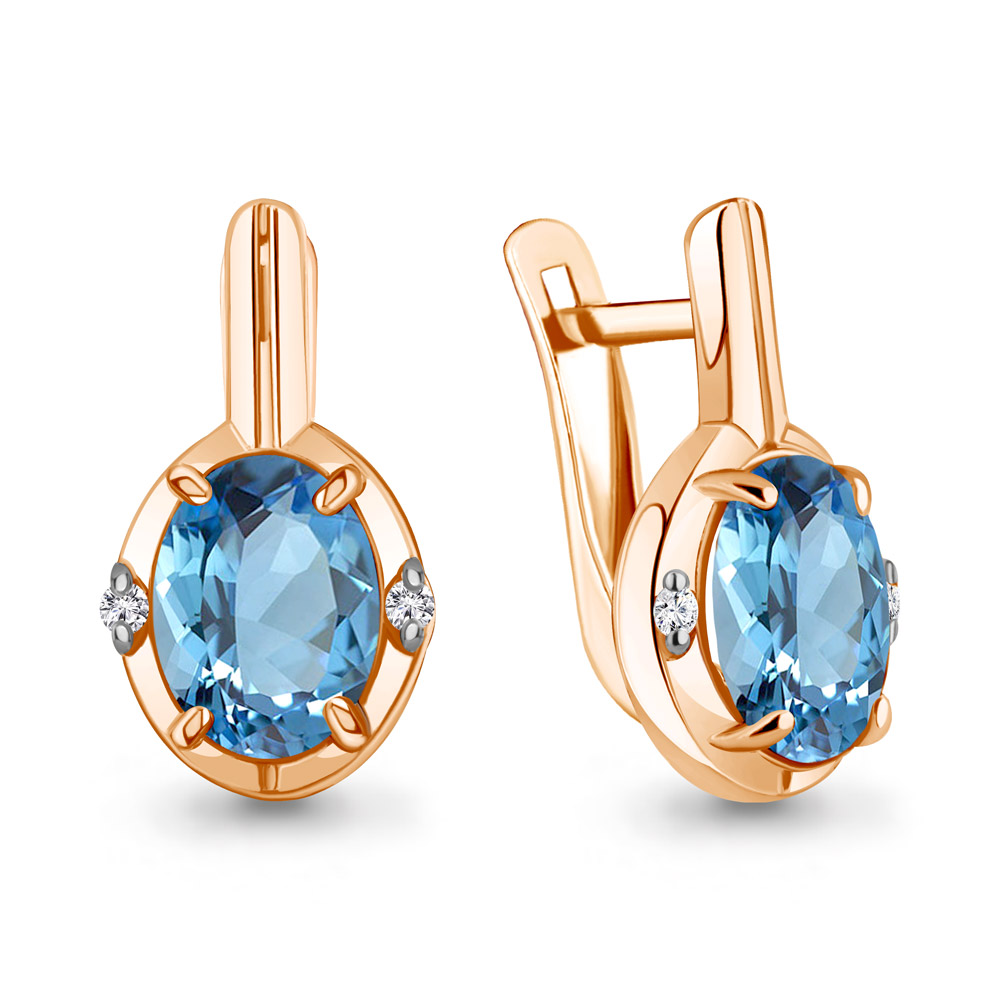 4469305 Серьги из Серебра с топазами свисс блю, фианитами