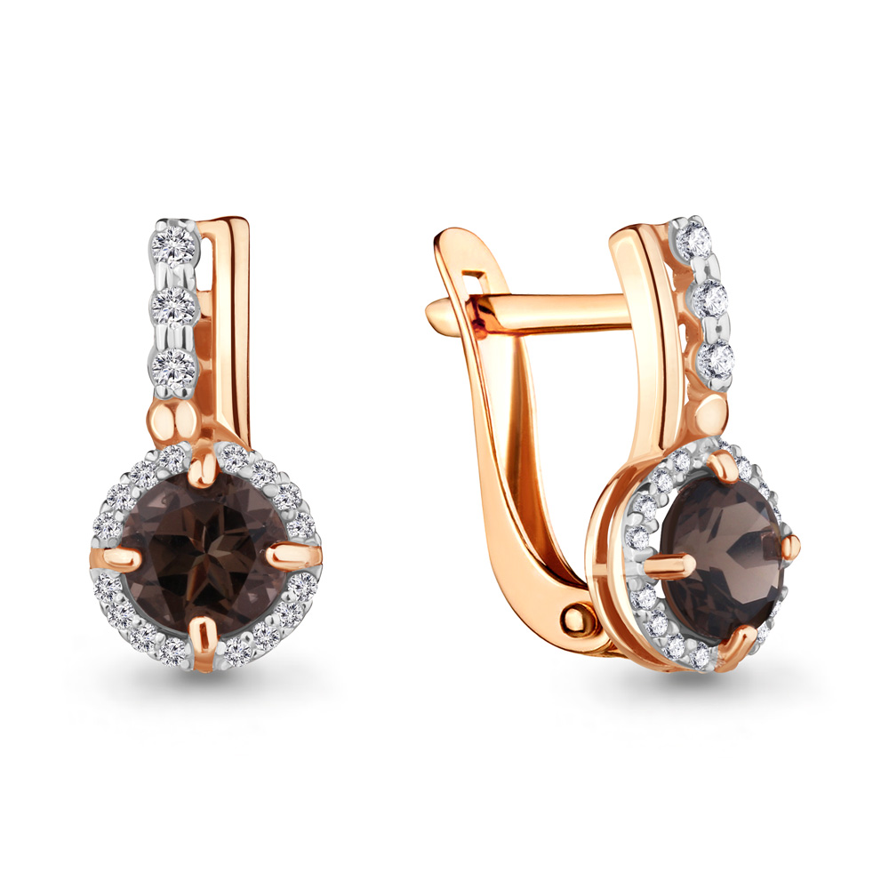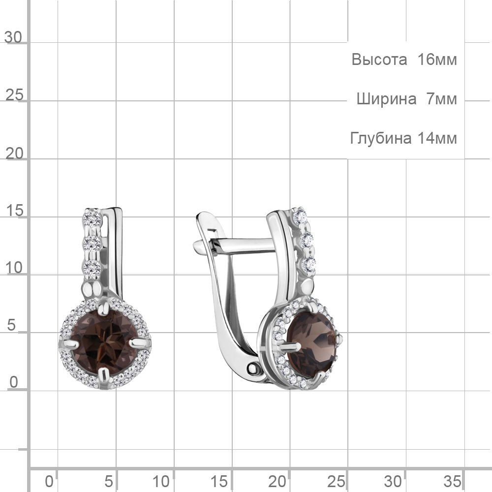 4469701А Серьги из Серебра с кварцами дымчатыми, фианитами