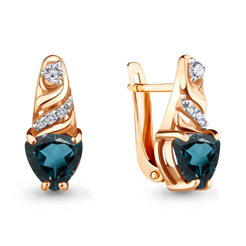 4469908А Серьги из Серебра с топазами лондон блю, фианитами