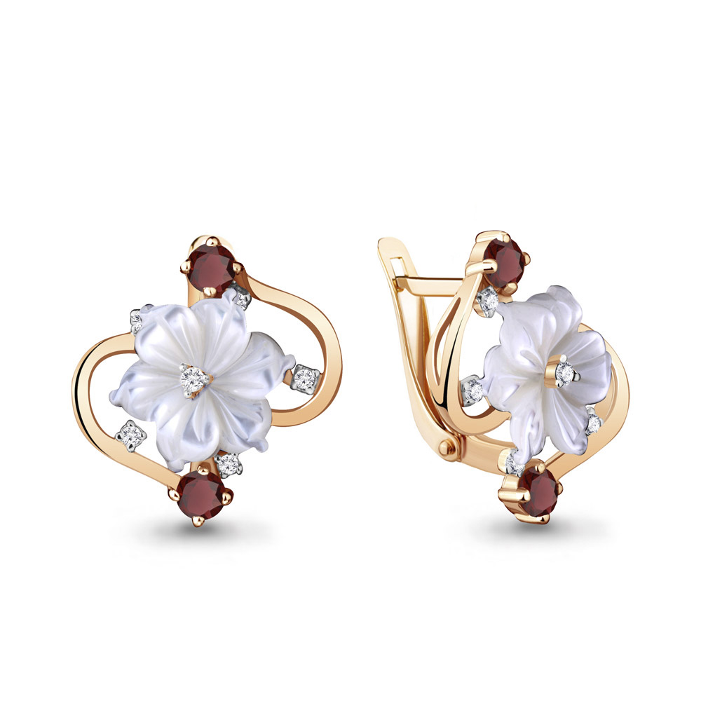 4470403А Серьги из Серебра с гранатами, поделочными камнями, фианитами из коллекции "Жозефина"