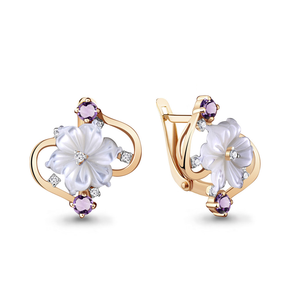 4470404А Серьги из Серебра с аметистами, поделочными камнями, фианитами