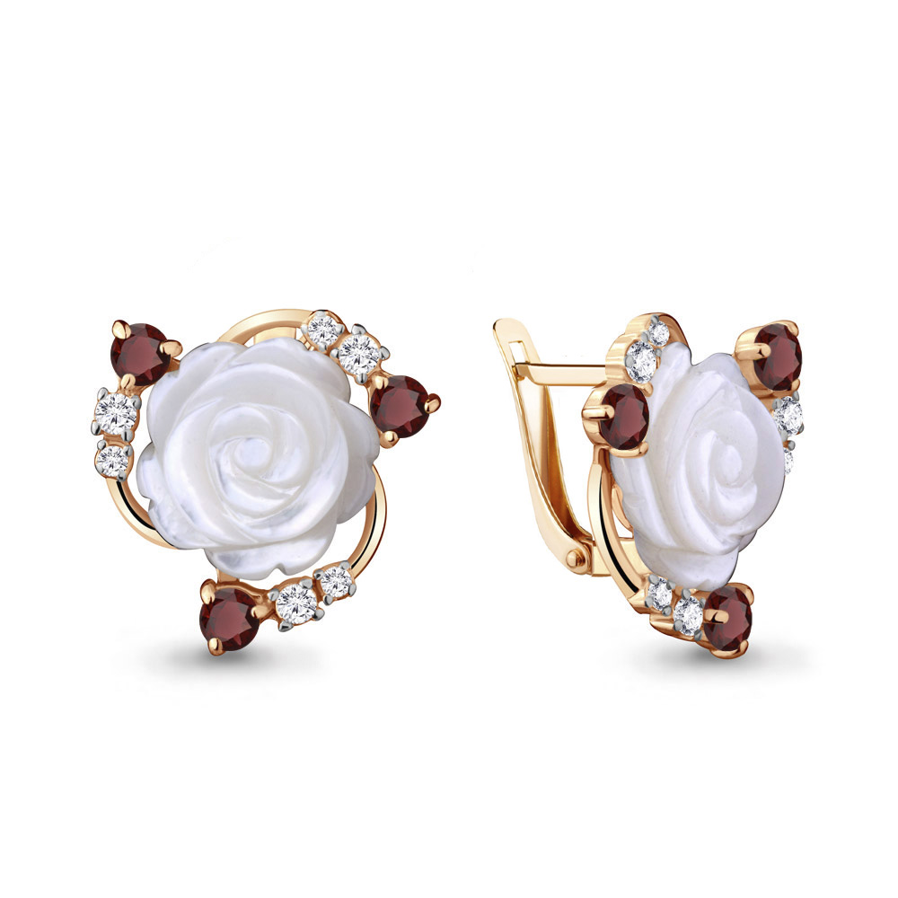 4470503А Серьги из Серебра с гранатами, поделочными камнями, фианитами из коллекции "Жозефина"