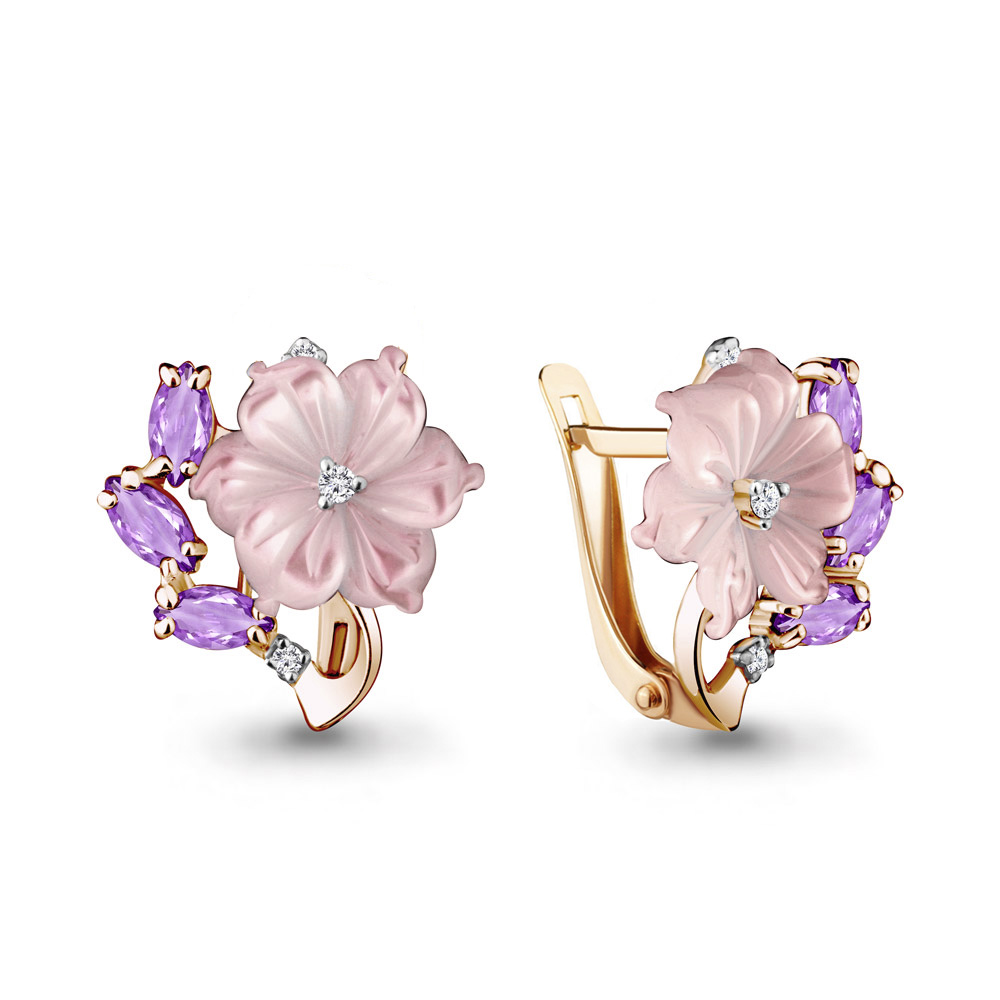 4470704В Серьги из Серебра с аметистами, поделочными камнями, фианитами из коллекции "Жозефина"