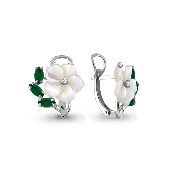 4470709 Серьги из Серебра с агатами, поделочными камнями, фианитами