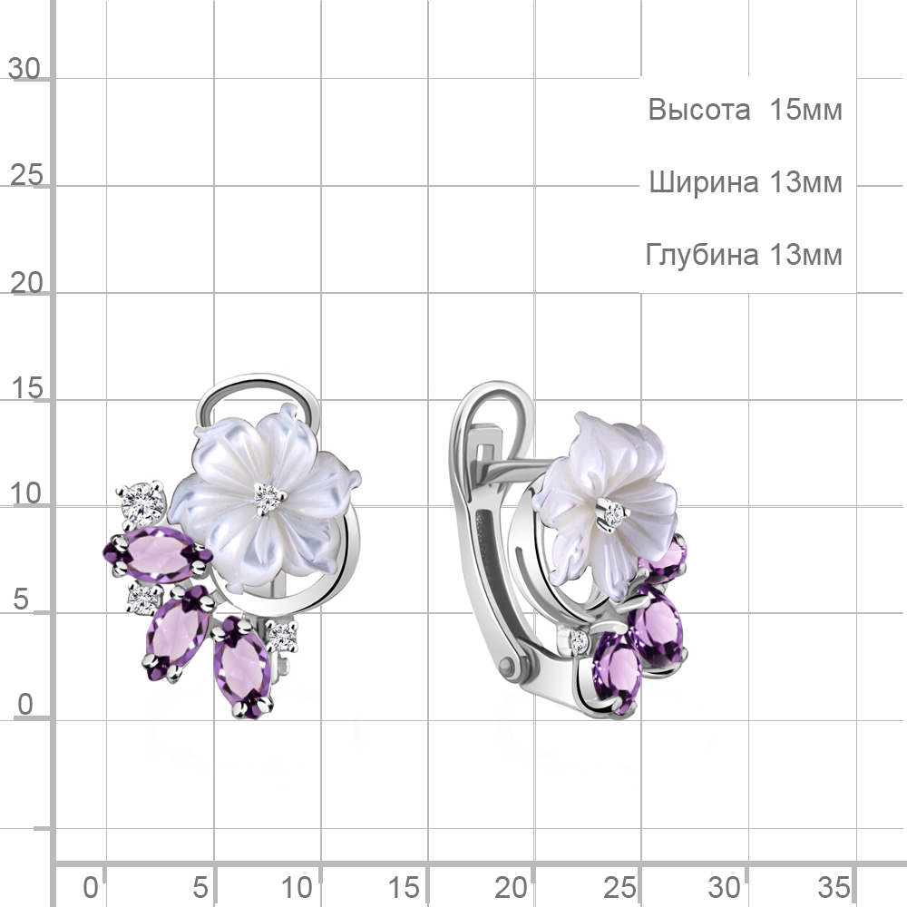 4471004А Серьги из Серебра с аметистами, поделочными камнями, фианитами из коллекции "Жозефина"
