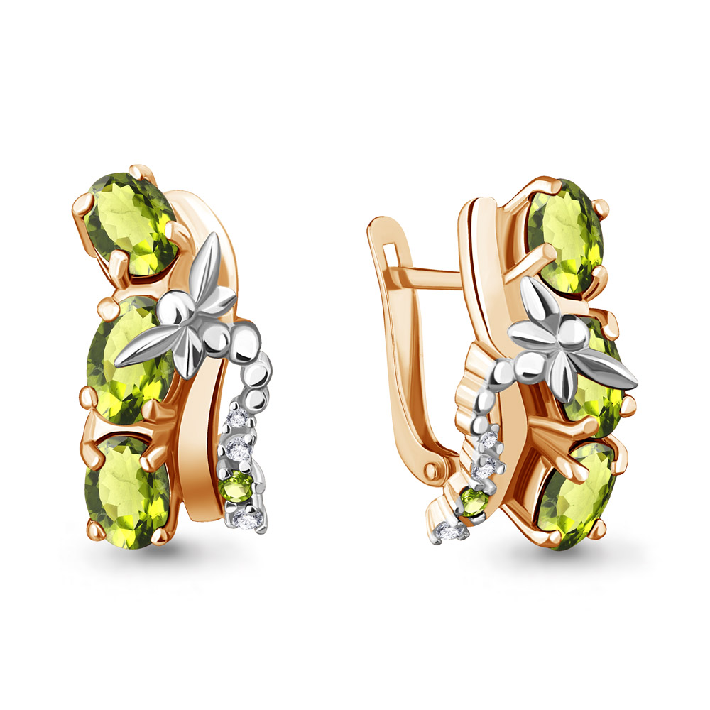 4471607А Серьги из Серебра с фианитами, хризолитами
