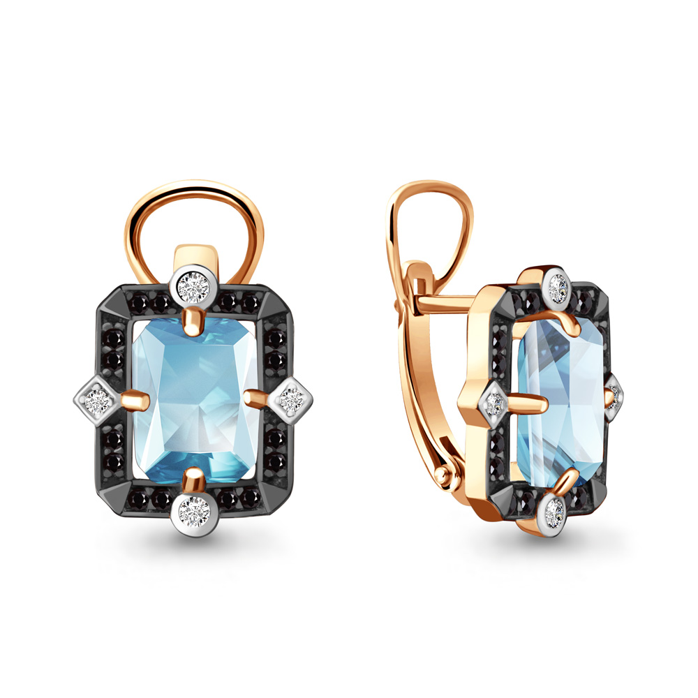 4474402Ч Серьги из Серебра с нанокристаллами, топазами скай блю, фианитами из коллекции "Gothic"