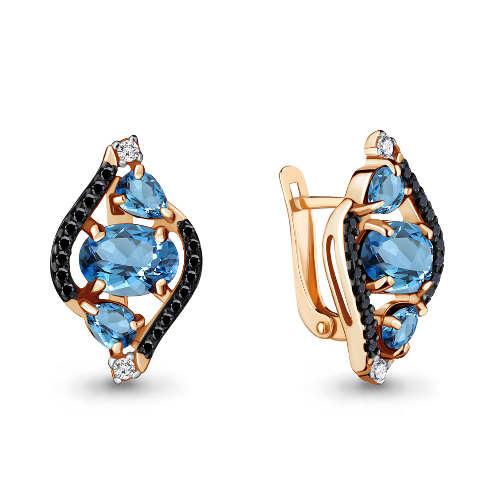 4474605Ч Серьги из Серебра с нанокристаллами, топазами свисс блю, фианитами из коллекции "Gothic"
