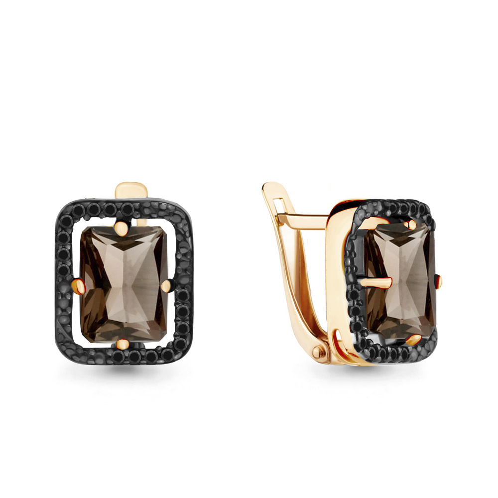 4475201Ч Серьги из Серебра с кварцами дымчатыми, нанокристаллами из коллекции "Gothic"