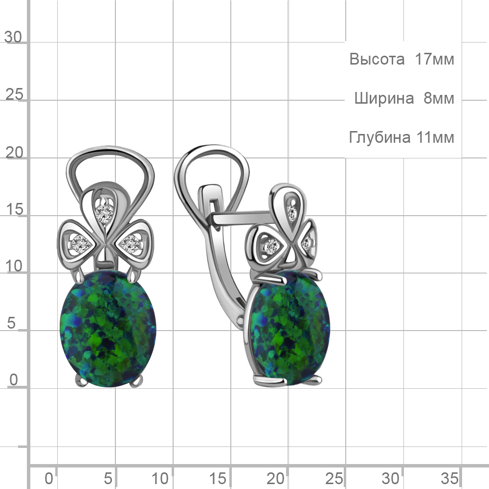 4477296А Серьги из Серебра с опалами иск., фианитами