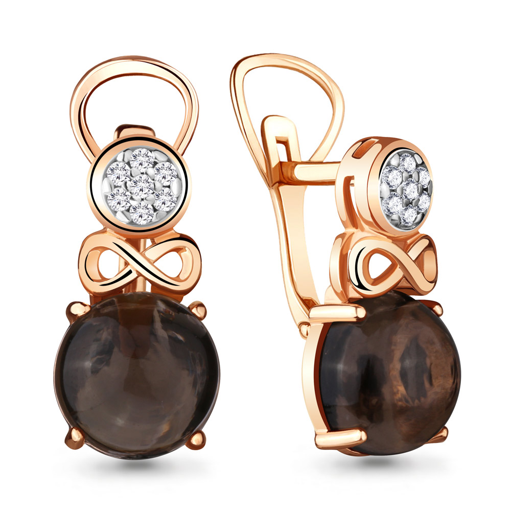 4477701А Серьги из Серебра с кварцами дымчатыми, фианитами