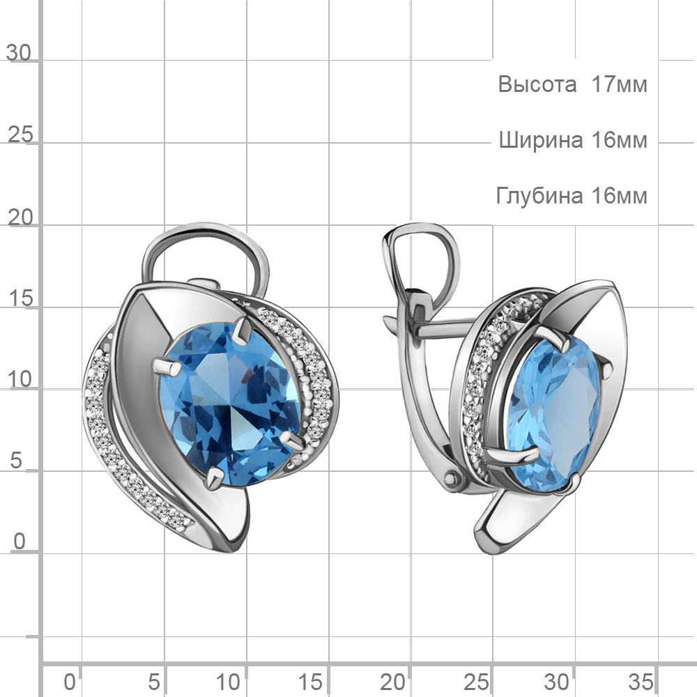 4478692А Серьги из Серебра с нанотопазами свисс, фианитами из коллекции "Каприз"
