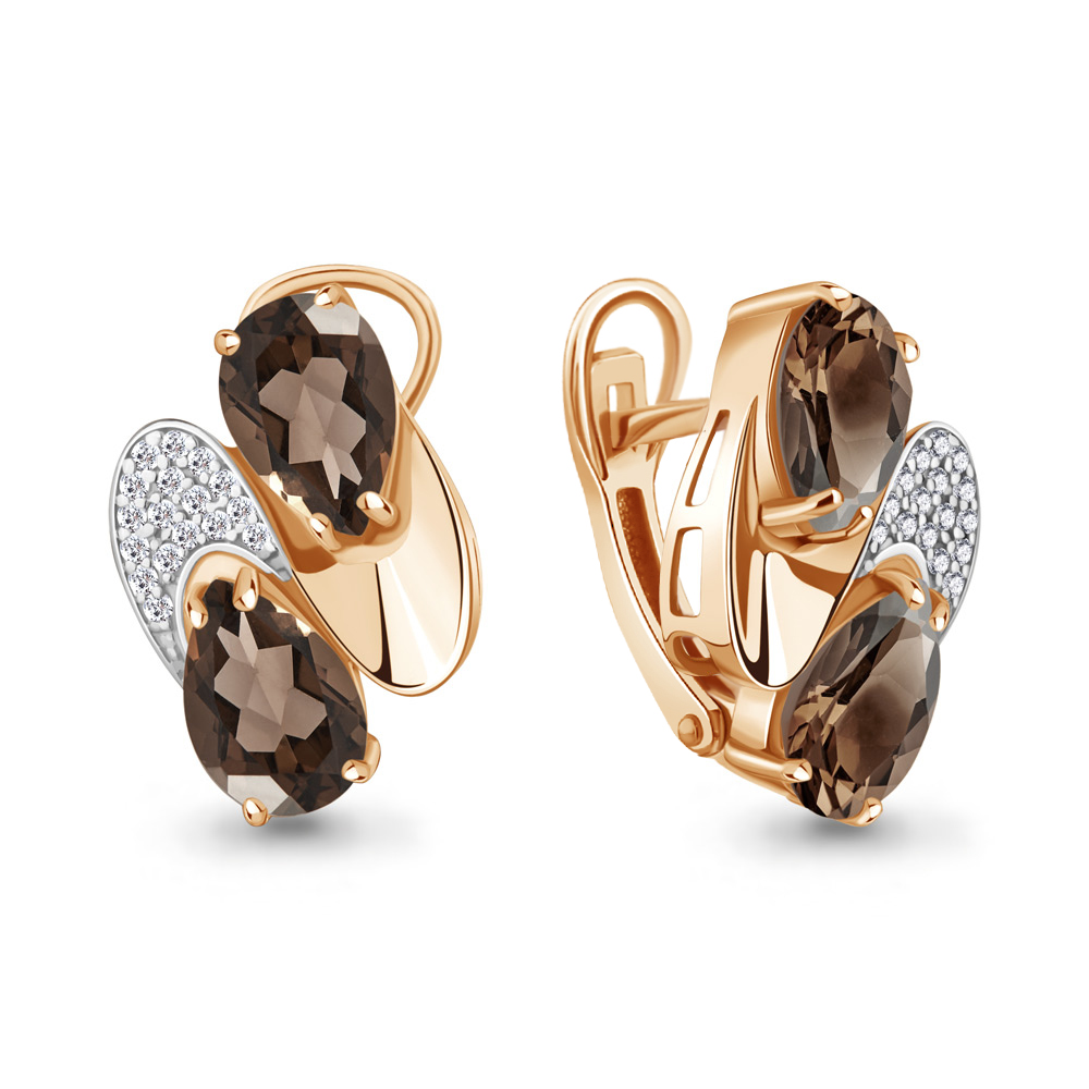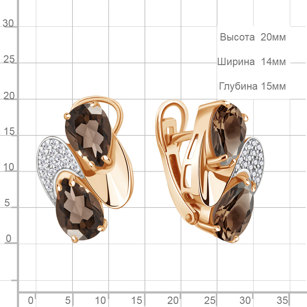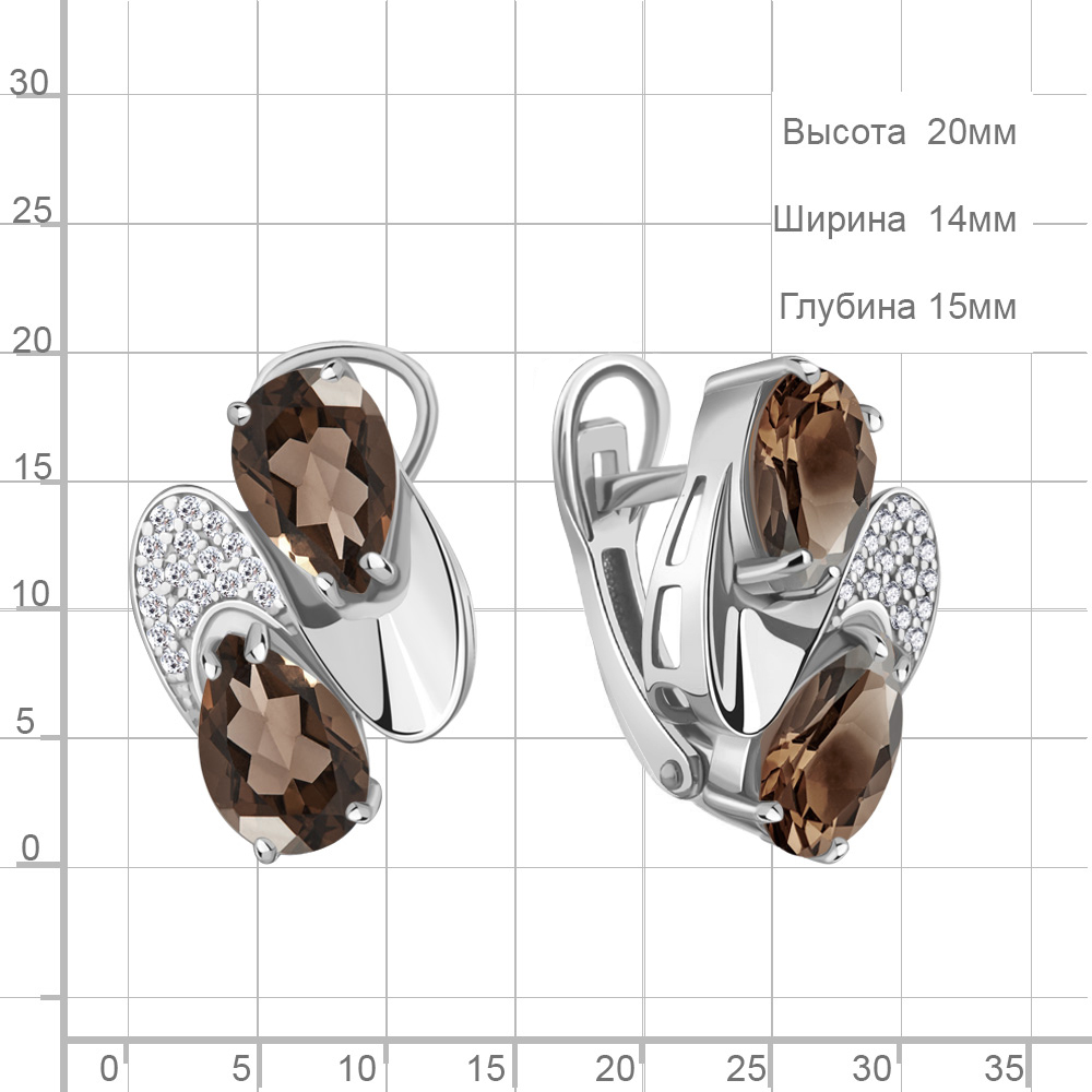 4479001А Серьги из Серебра с кварцами дымчатыми, фианитами