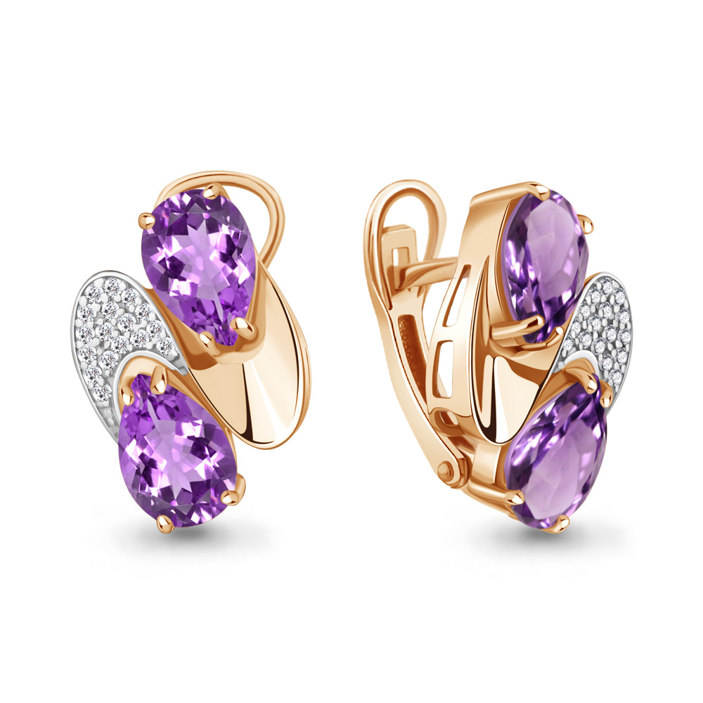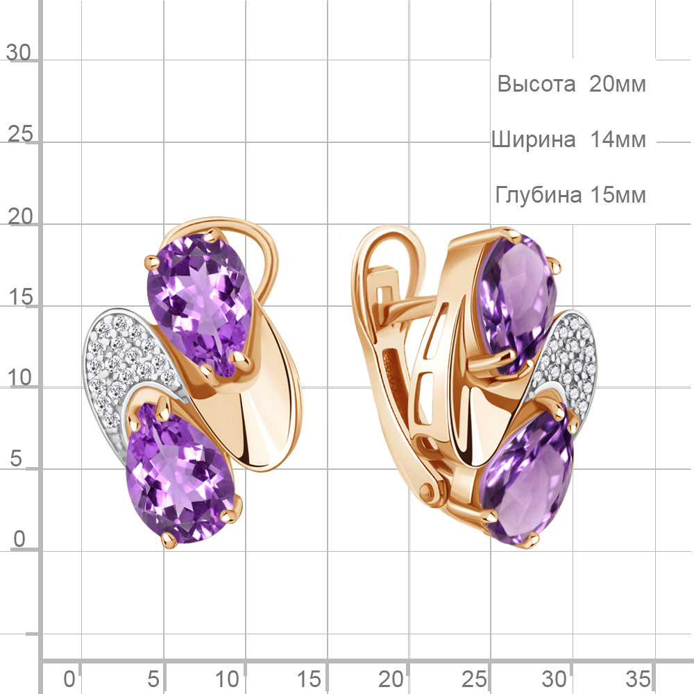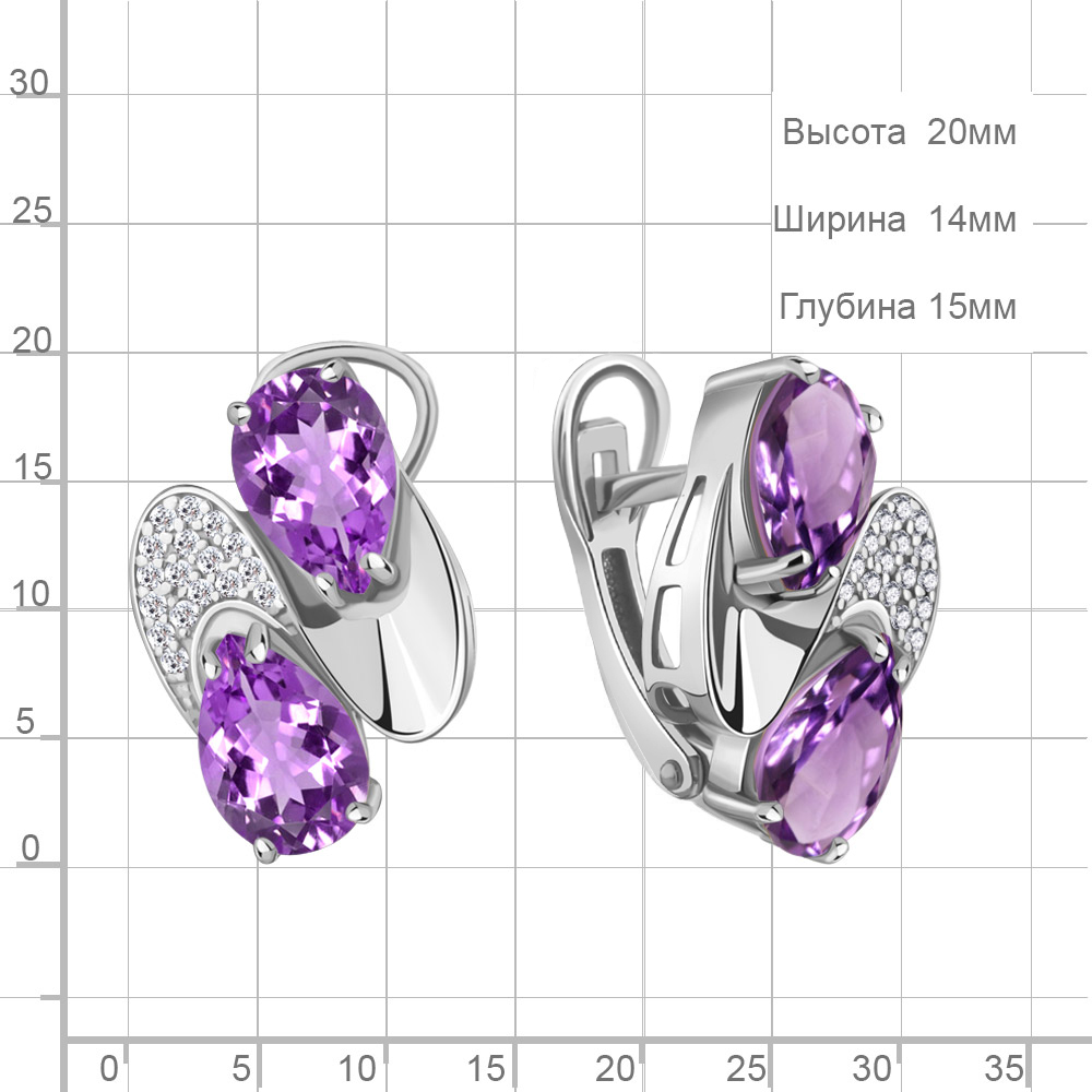 4479004А Серьги из Серебра с аметистами, фианитами
