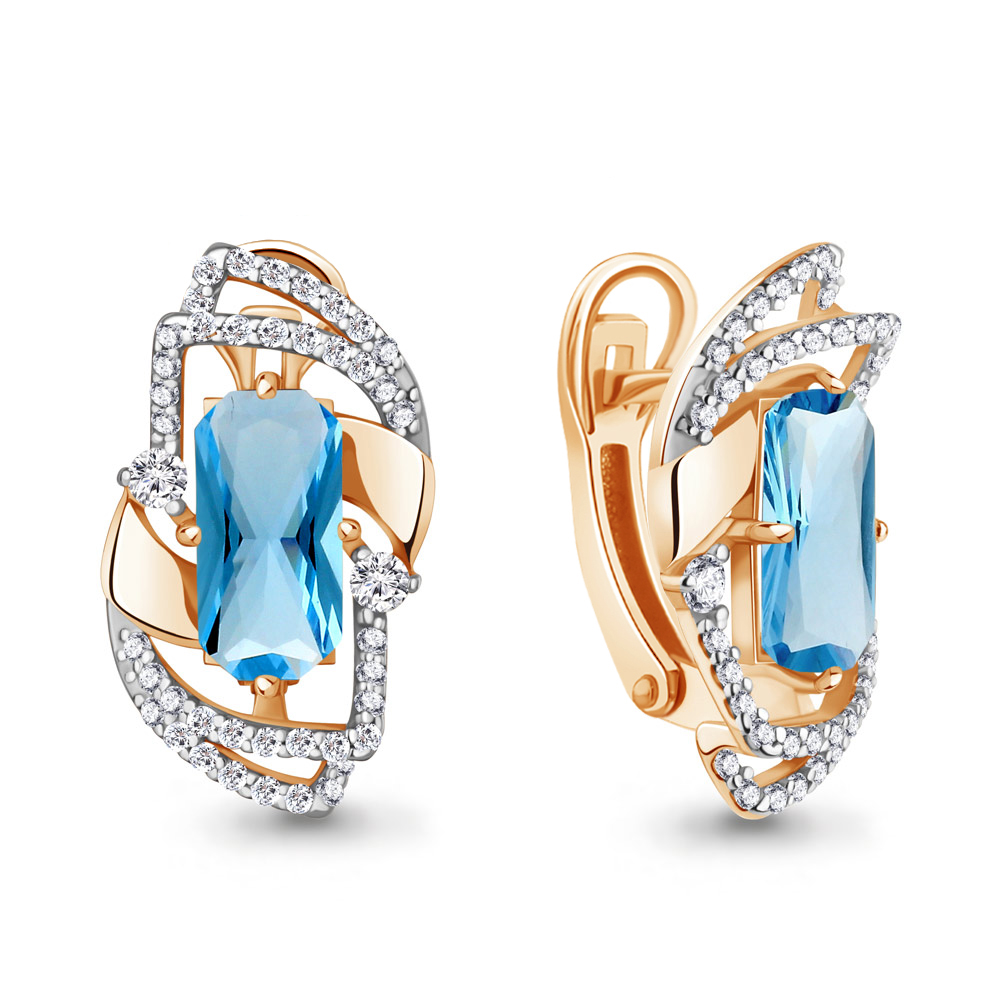 4479392А Серьги из Серебра с нанотопазами свисс, фианитами из коллекции "Каприз"