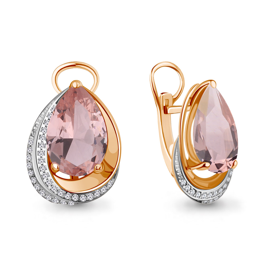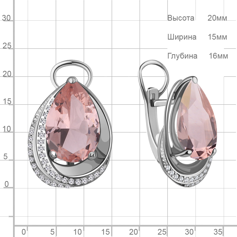 4479990А Серьги из Серебра с наноморганитами, фианитами из коллекции "Каприз"