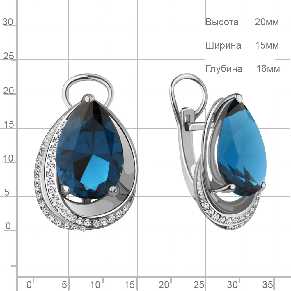 4479993А Серьги из Серебра с нанотопазами лондон, фианитами из коллекции "Каприз"