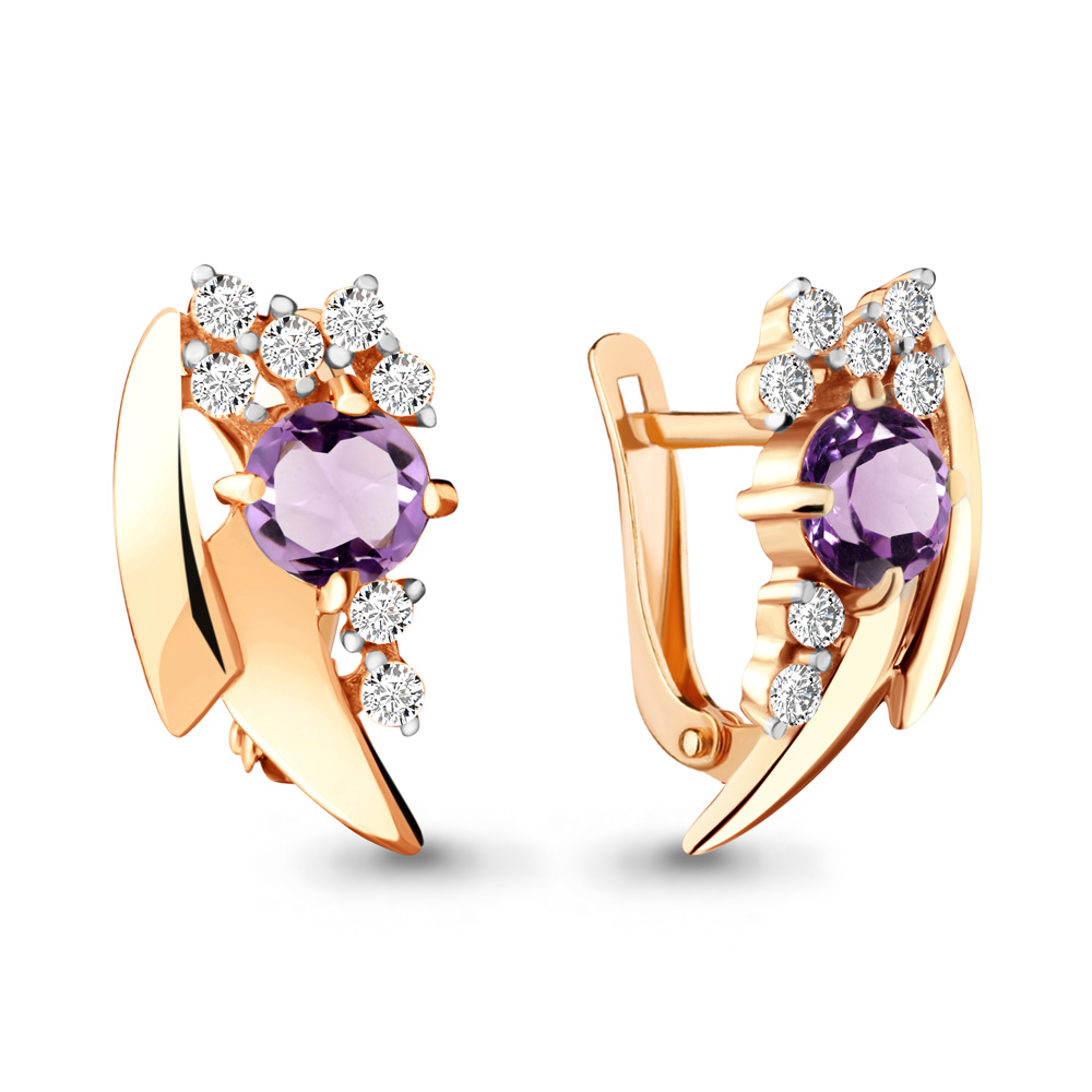 4482404А Серьги из Серебра с аметистами, фианитами