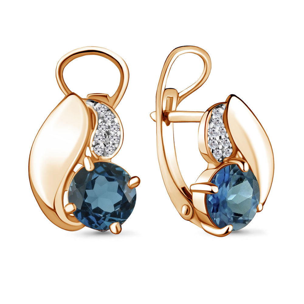 4486608А Серьги из Серебра с топазами лондон блю, фианитами