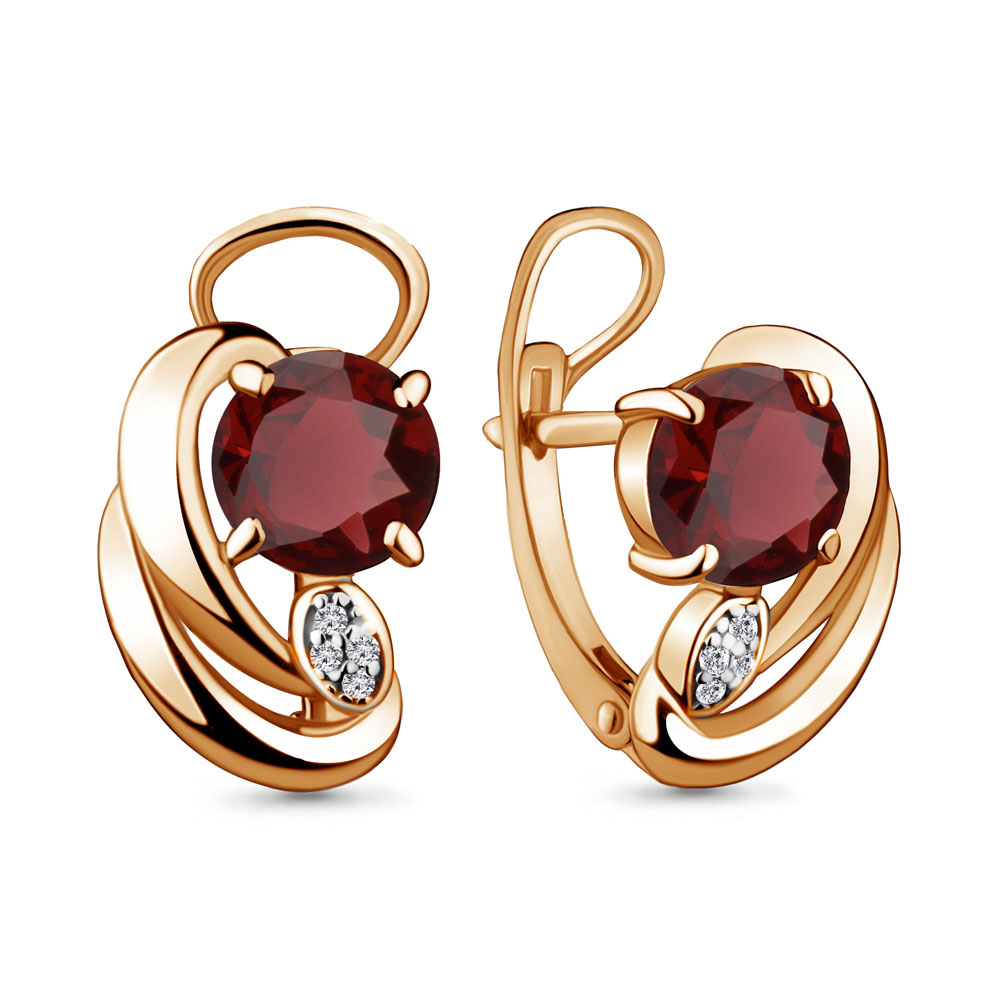 4487103А Серьги из Серебра с гранатами, фианитами