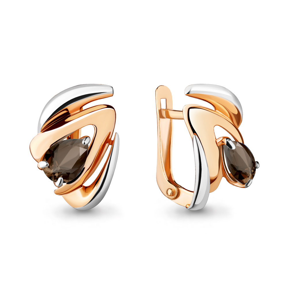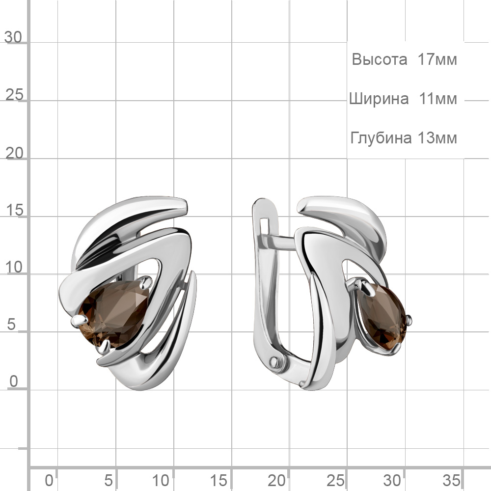 4489901 Серьги из Серебра с кварцами дымчатыми из коллекции "Лагуна"
