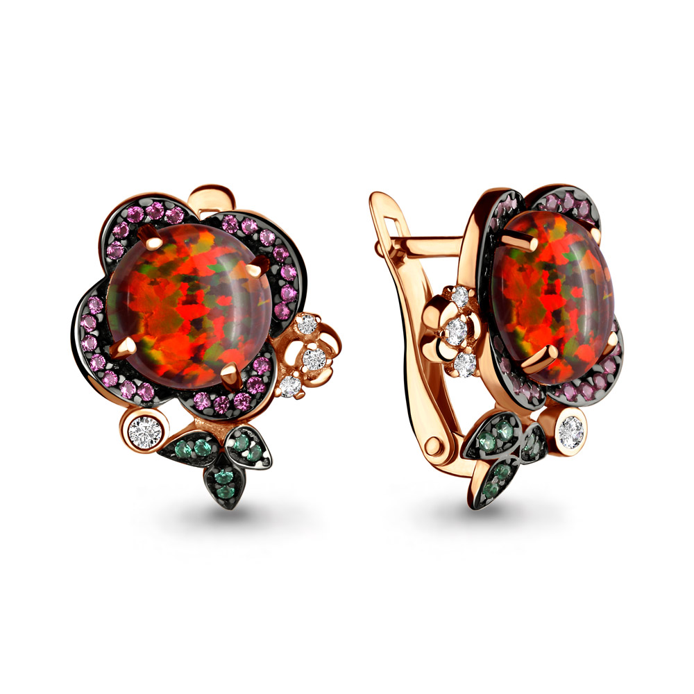 4498787ВГ Серьги из Серебра с наноизумрудами, нанотурмалинами, опалами иск., фианитами из коллекции "Флёр"