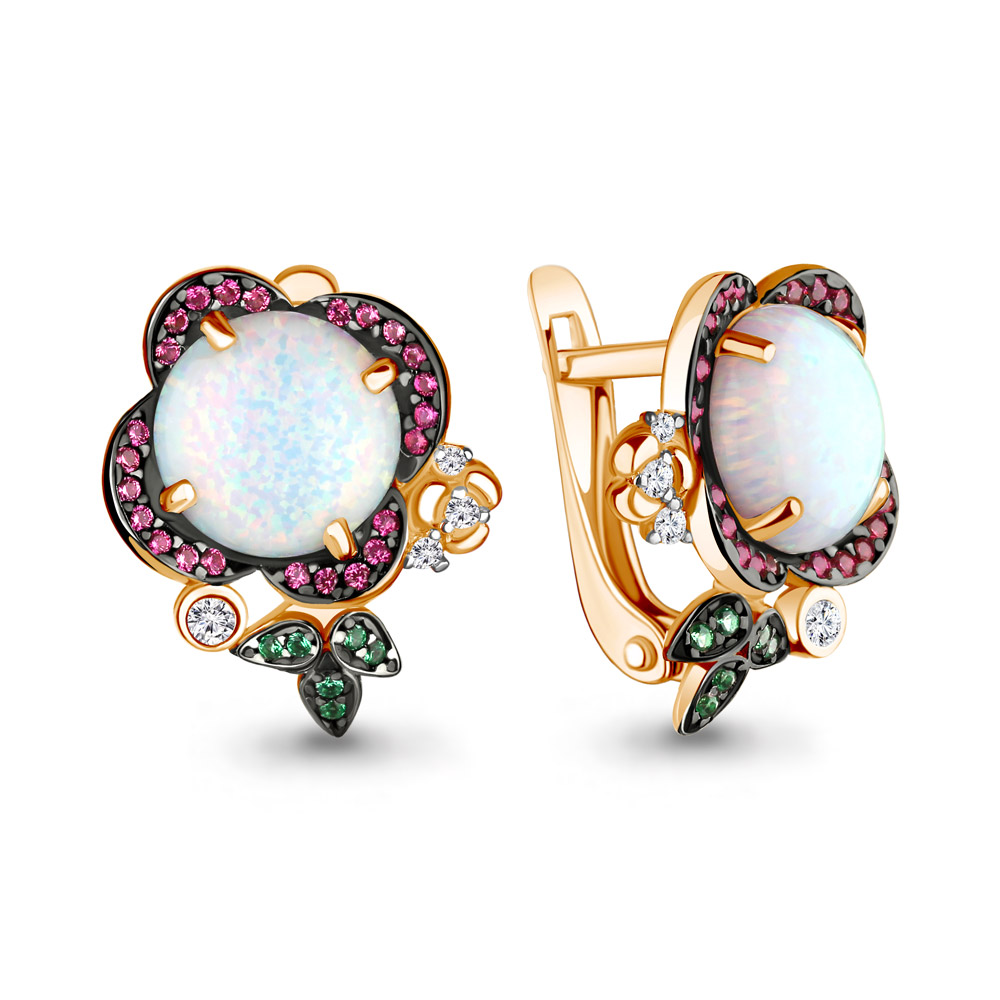 4498798ГВ Серьги из Серебра с наноизумрудами, нанотурмалинами, опалами иск., фианитами из коллекции "Флёр"