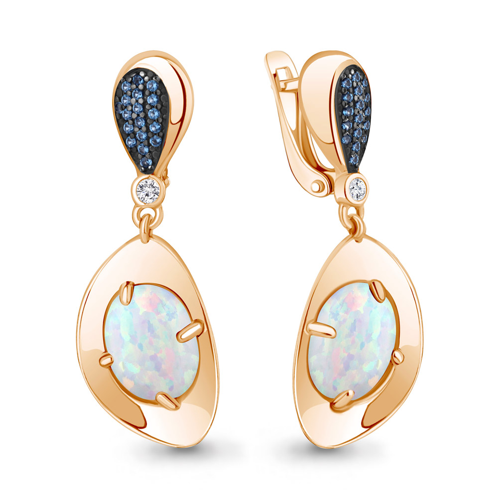 4499298Б Серьги из Серебра с наносапфирами, опалами иск., фианитами из коллекции "Флёр"