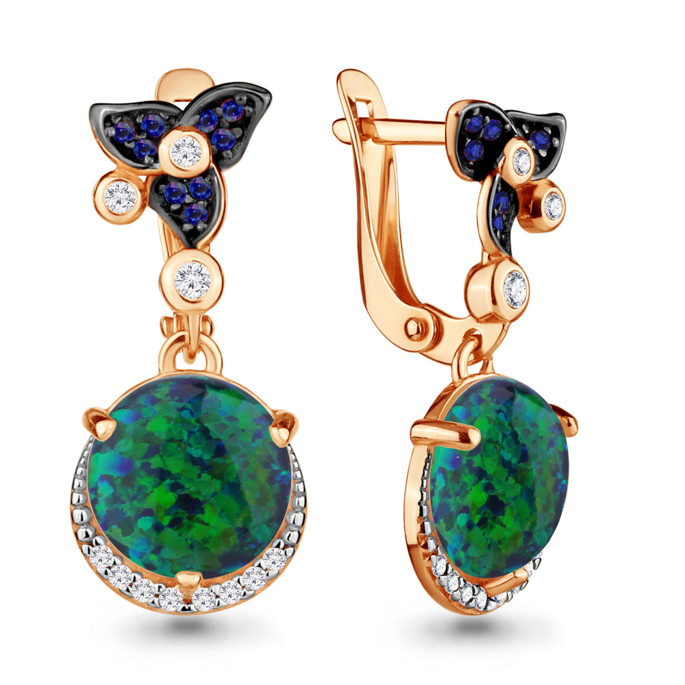 4499596Б Серьги из Серебра с наносапфирами, опалами иск., фианитами из коллекции "Флёр"