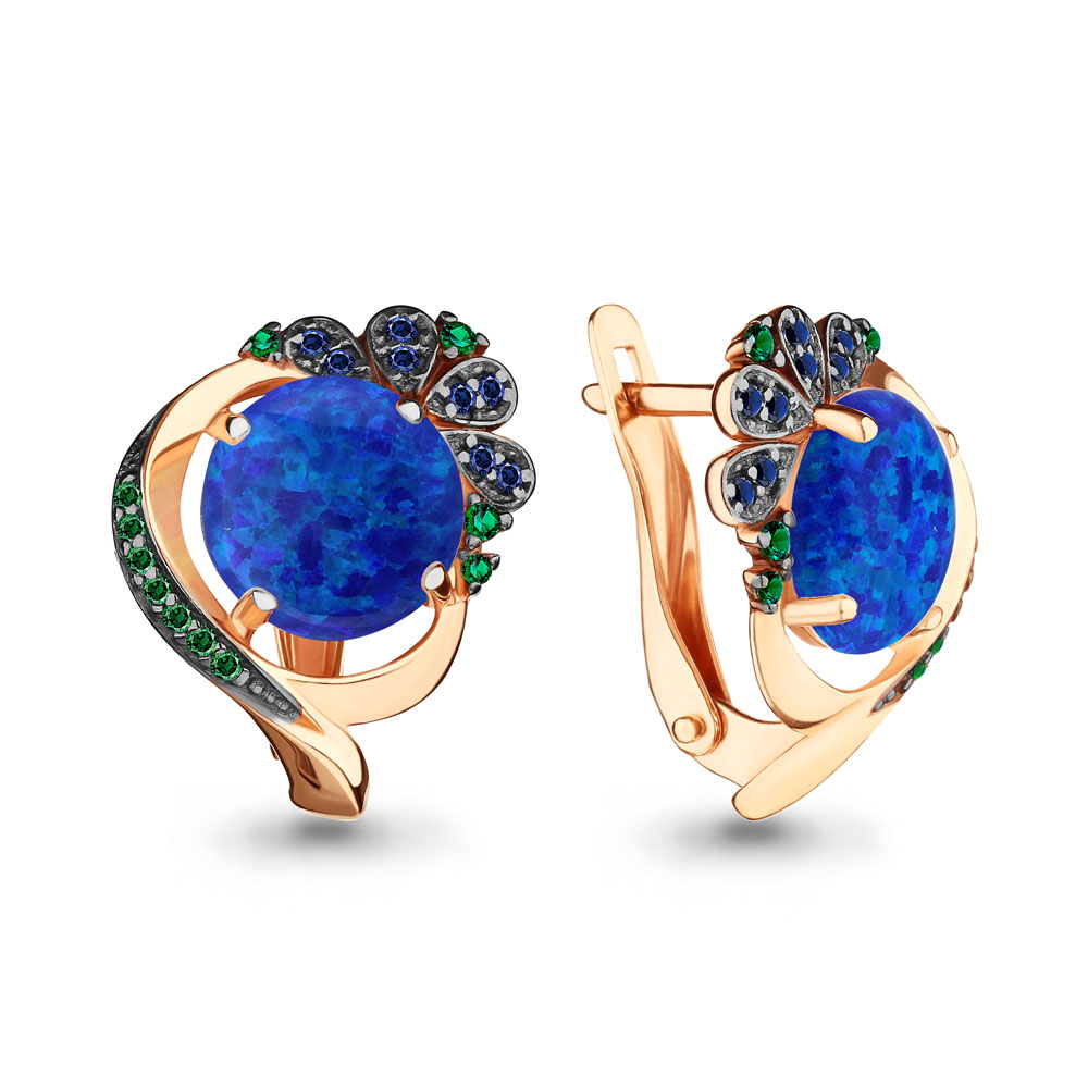 4499895ГБ Серьги из Серебра с наноизумрудами, наносапфирами, наносапфирами, опалами иск. из коллекции "Флёр"