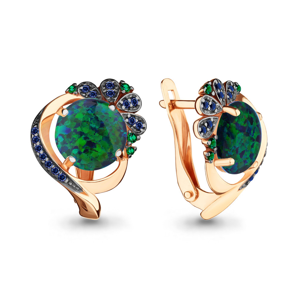 4499896БГ Серьги из Серебра с наноизумрудами, наносапфирами, наносапфирами, опалами иск. из коллекции "Флёр"