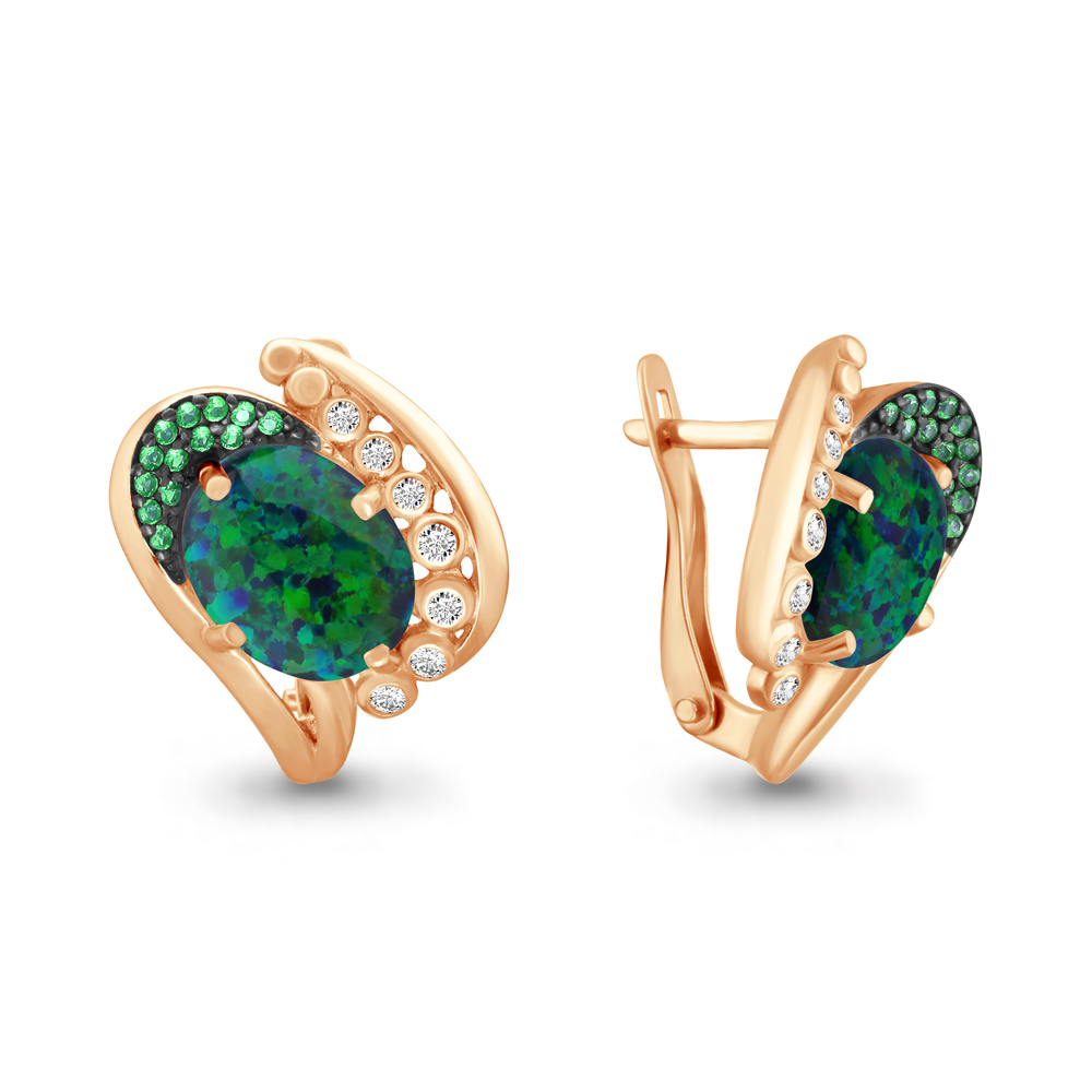 4499996Г Серьги из Серебра с наноизумрудами, опалами иск., фианитами из коллекции "Флёр"