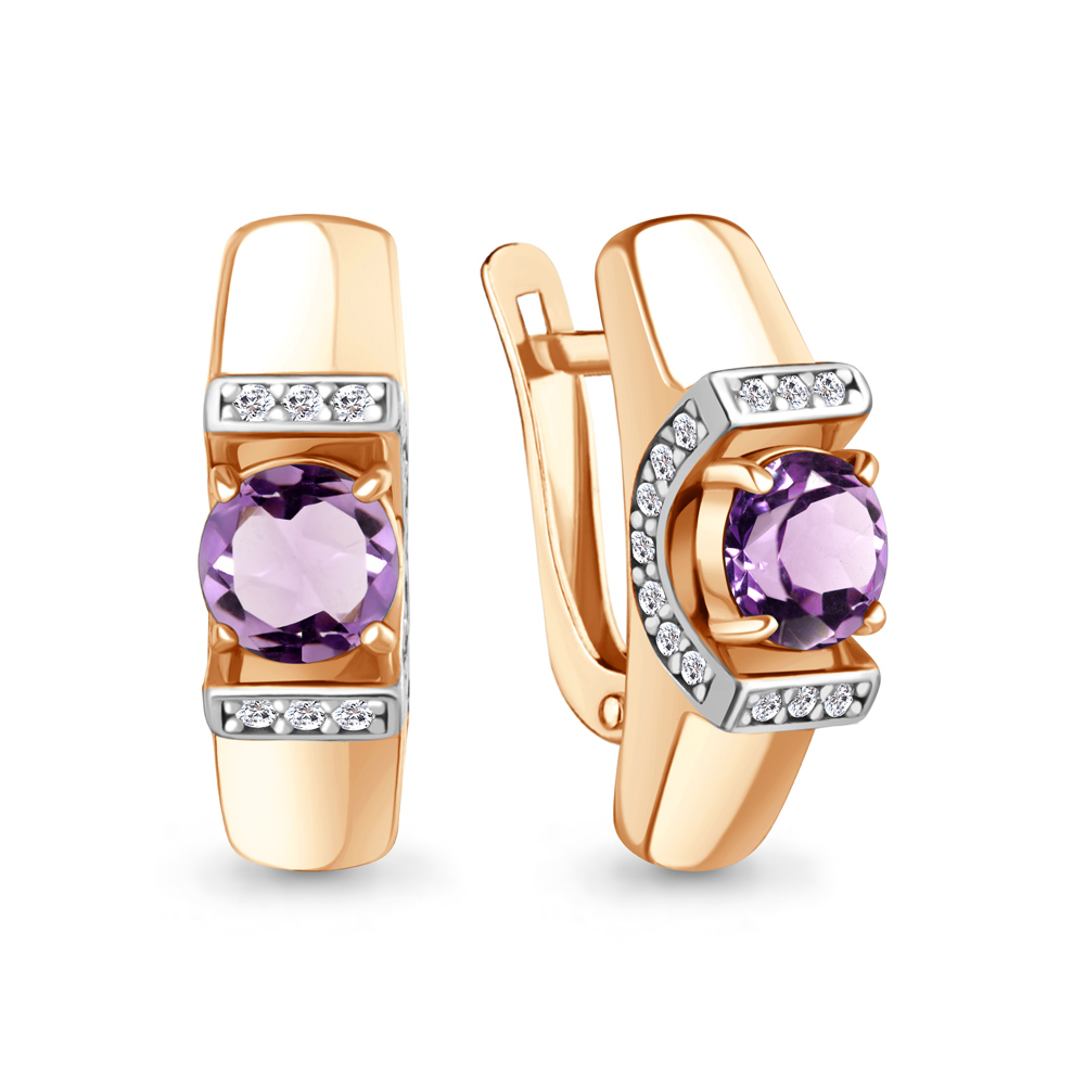 45007504А Серьги из Серебра с аметистами, фианитами