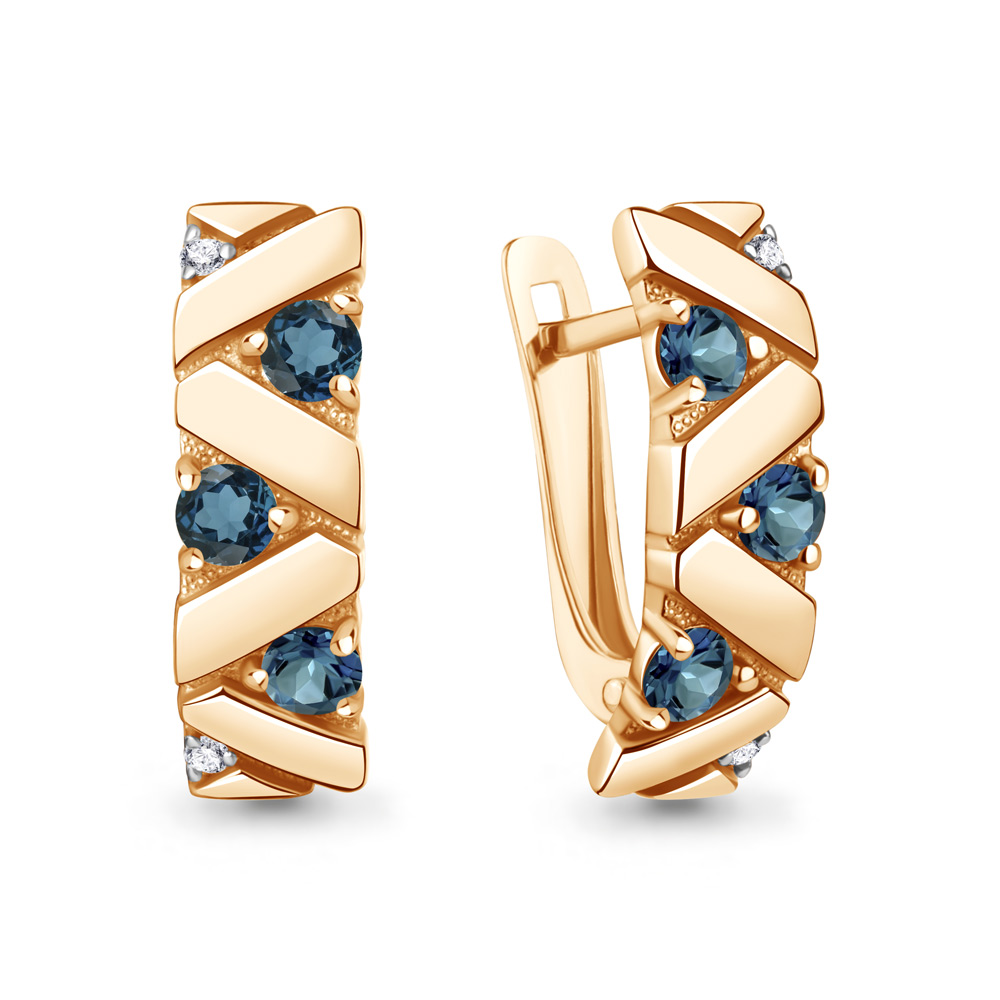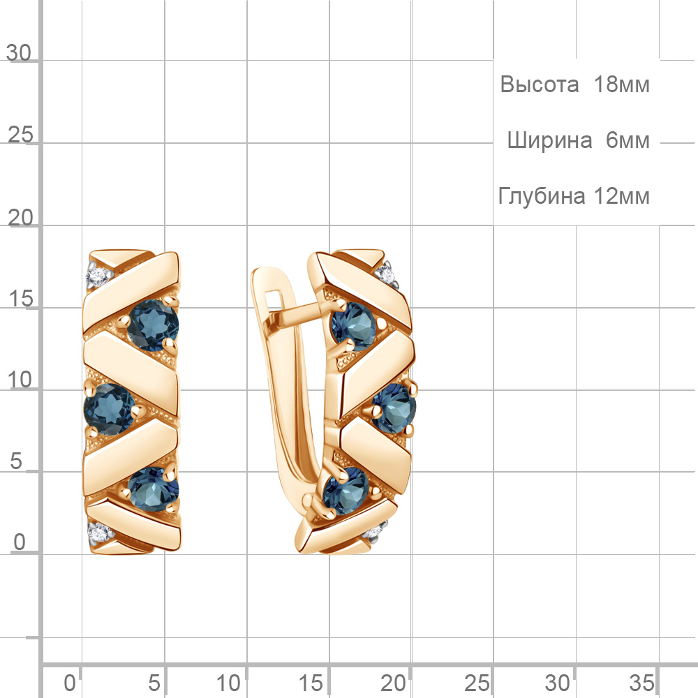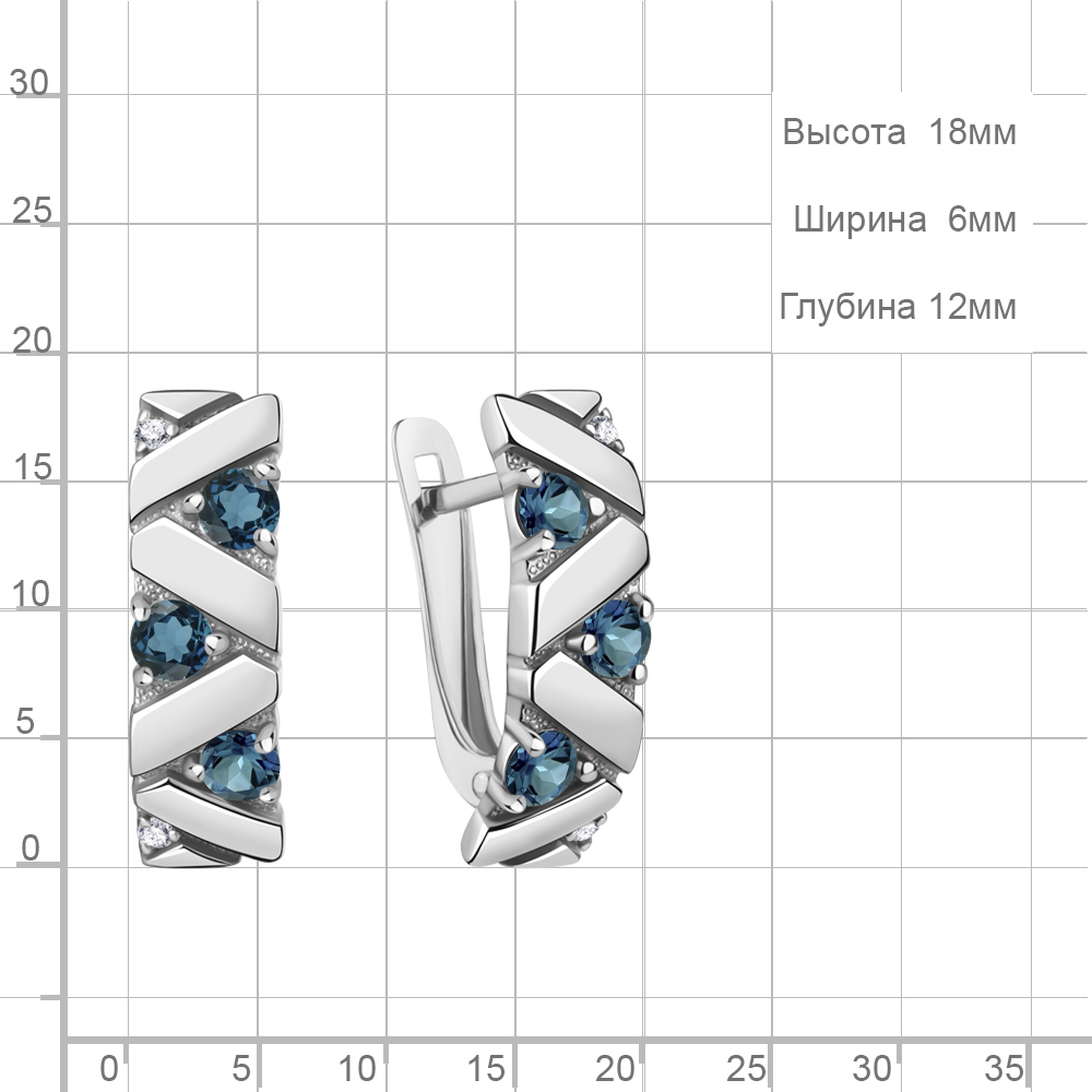 45008508А Серьги из Серебра с топазами лондон блю, фианитами