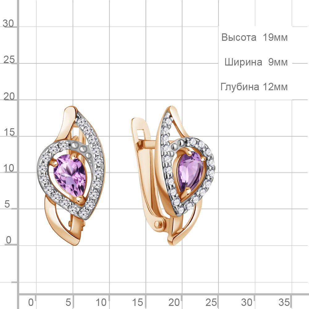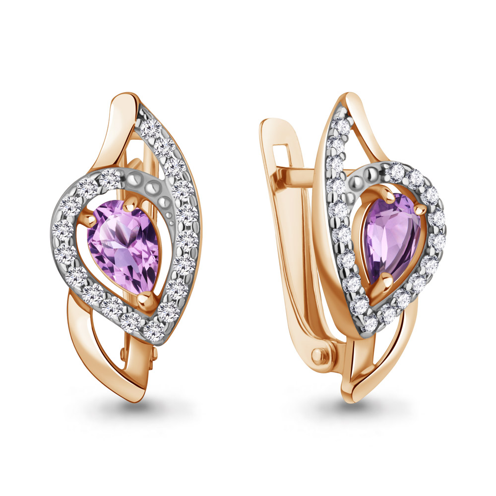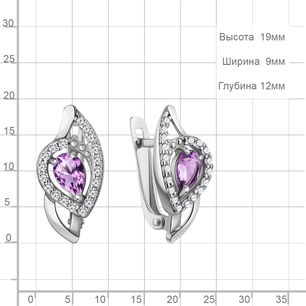 45008804А Серьги из Серебра с аметистами, фианитами