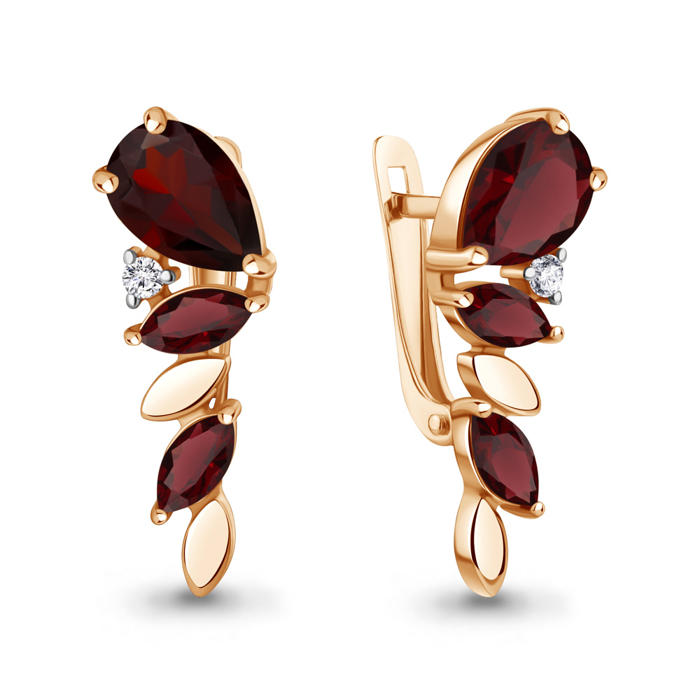 45009003А Серьги из Серебра с гранатами, фианитами