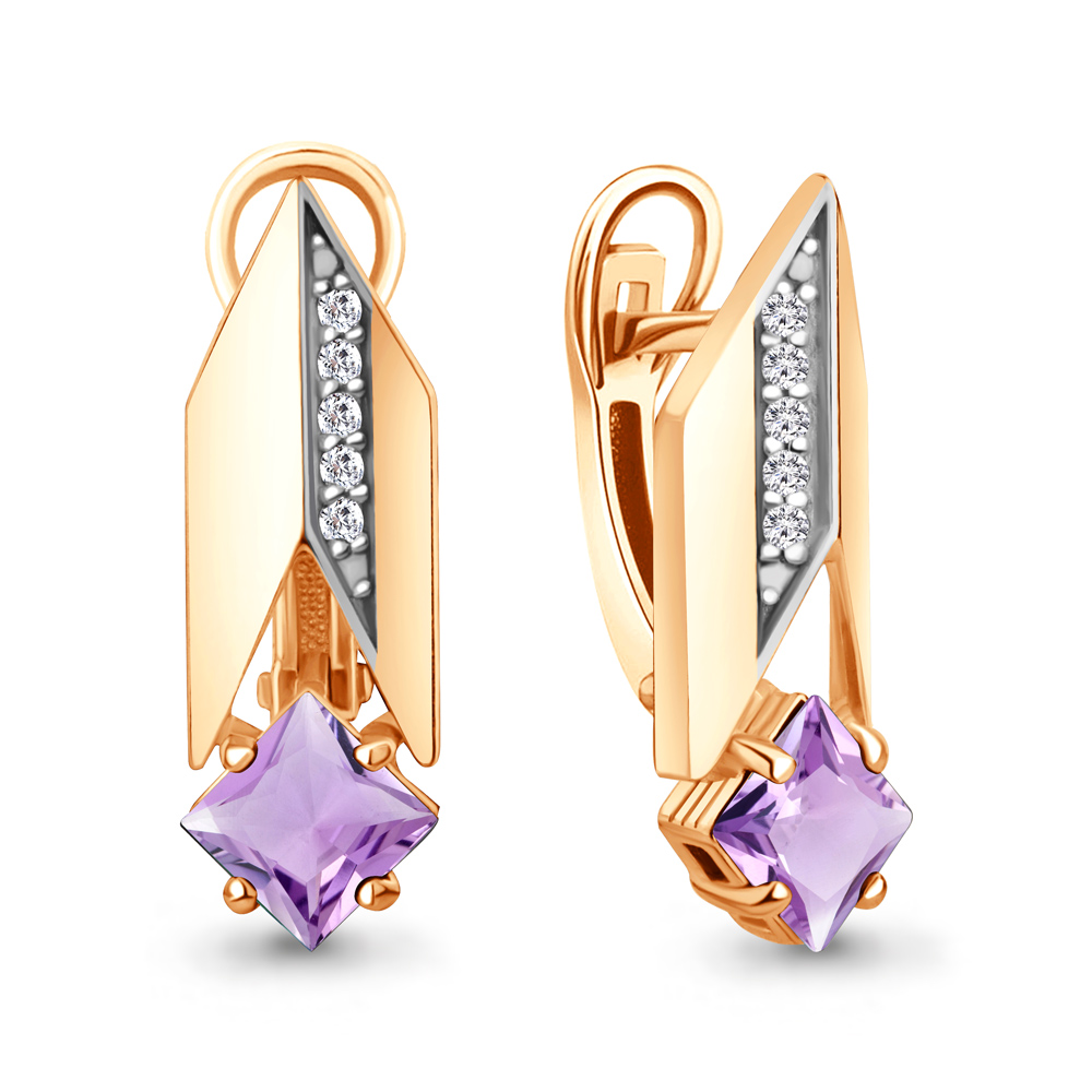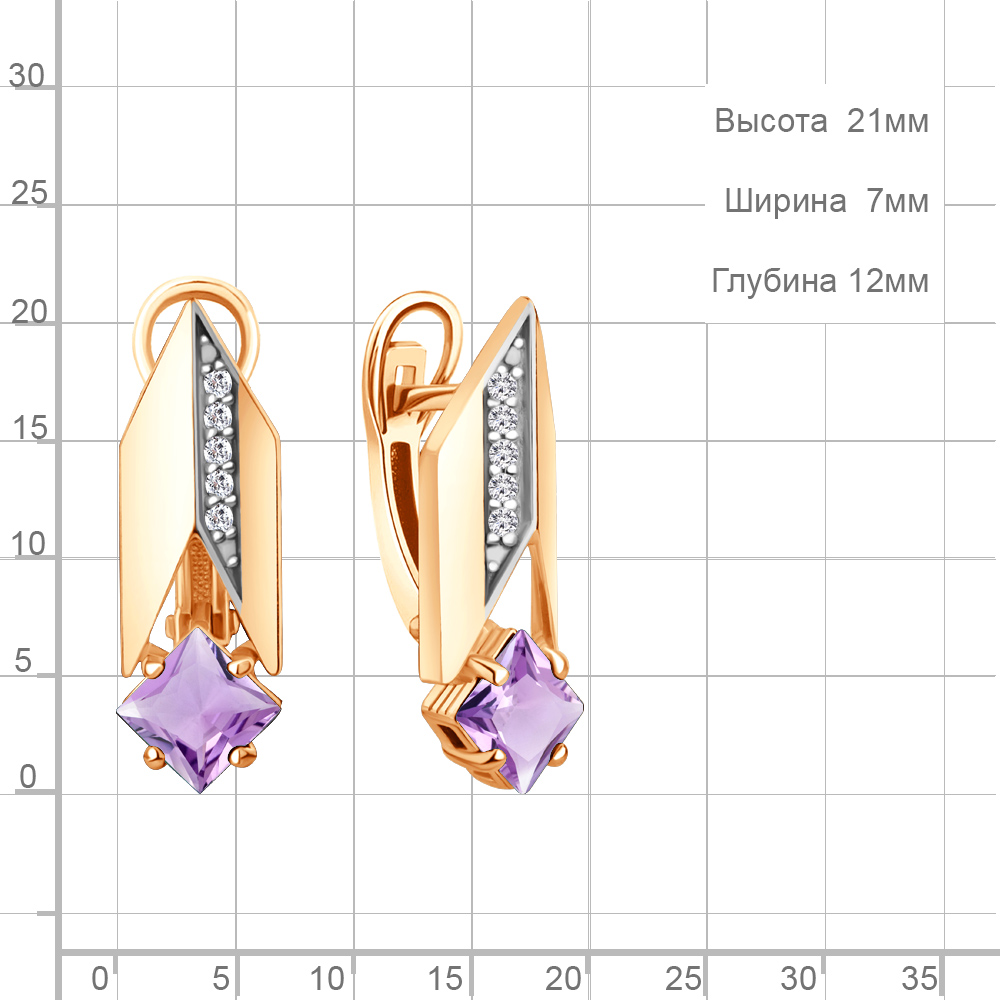 45009704А Серьги из Серебра с аметистами, фианитами