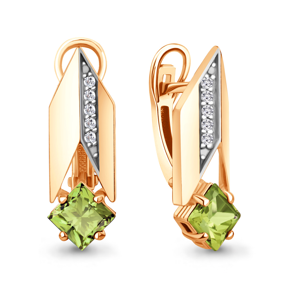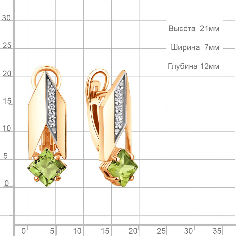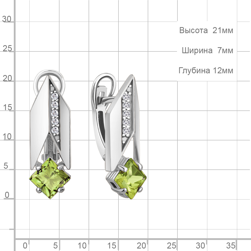 45009707А Серьги из Серебра с фианитами, хризолитами