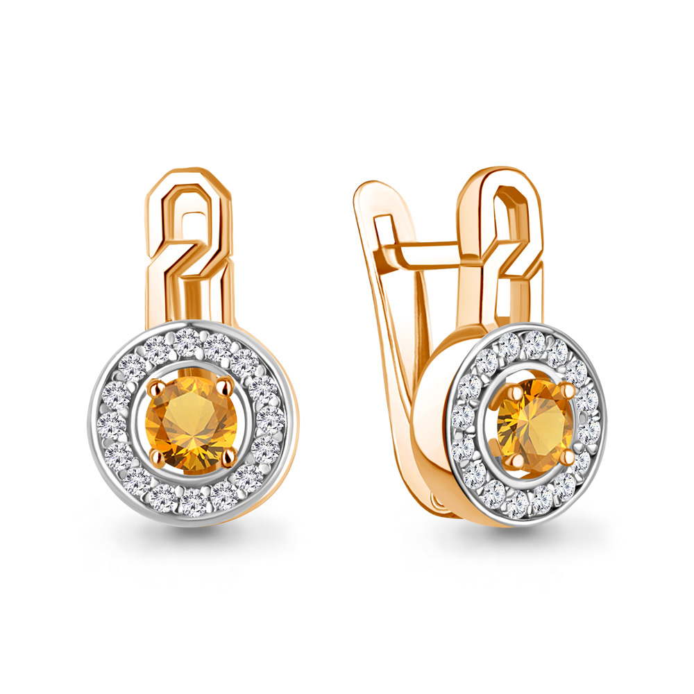 45011806А Серьги из Серебра с фианитами, цитринами