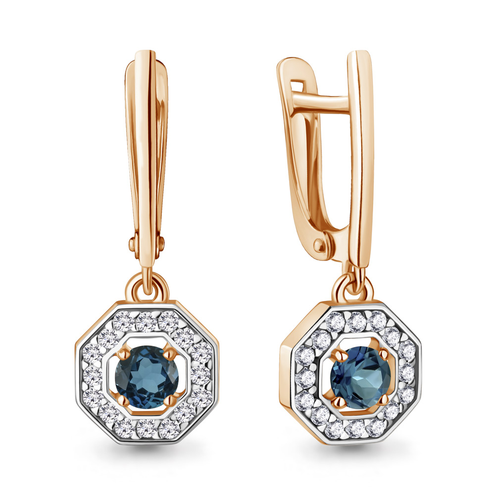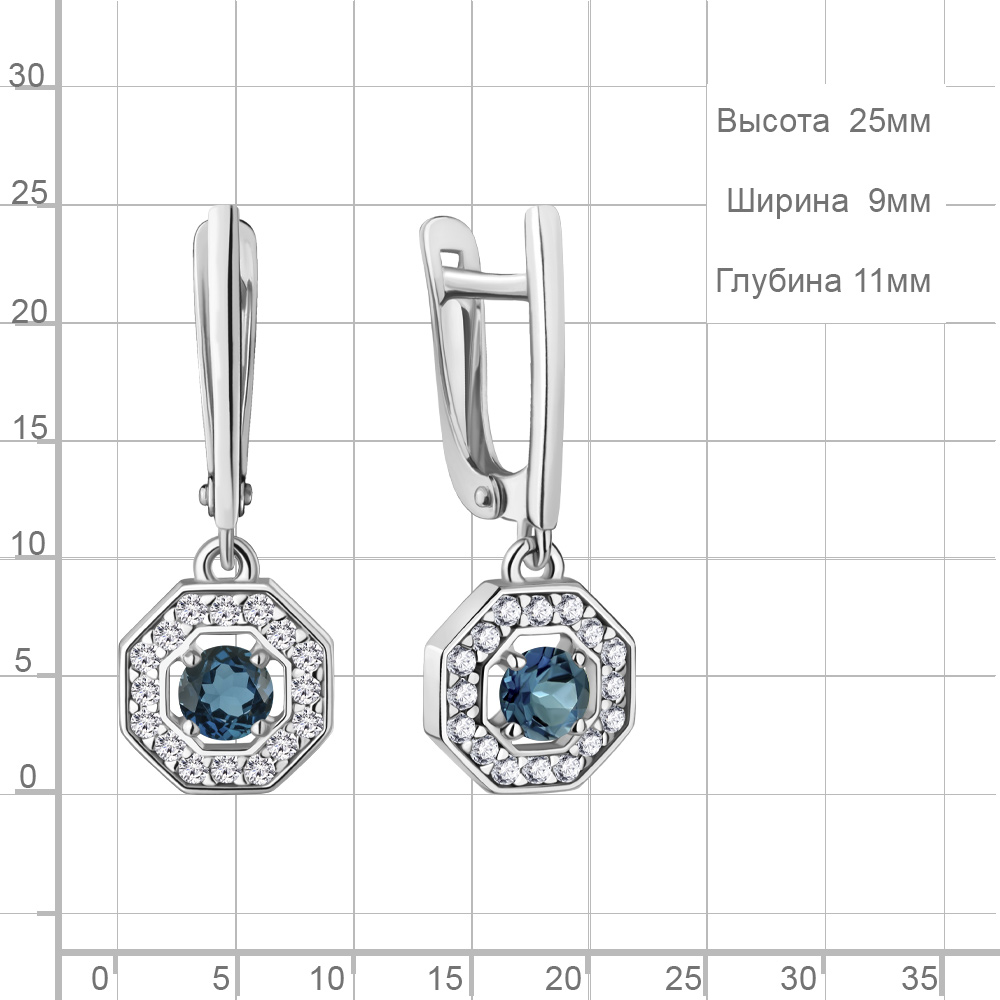 45012408А Серьги из Серебра с топазами лондон блю, фианитами