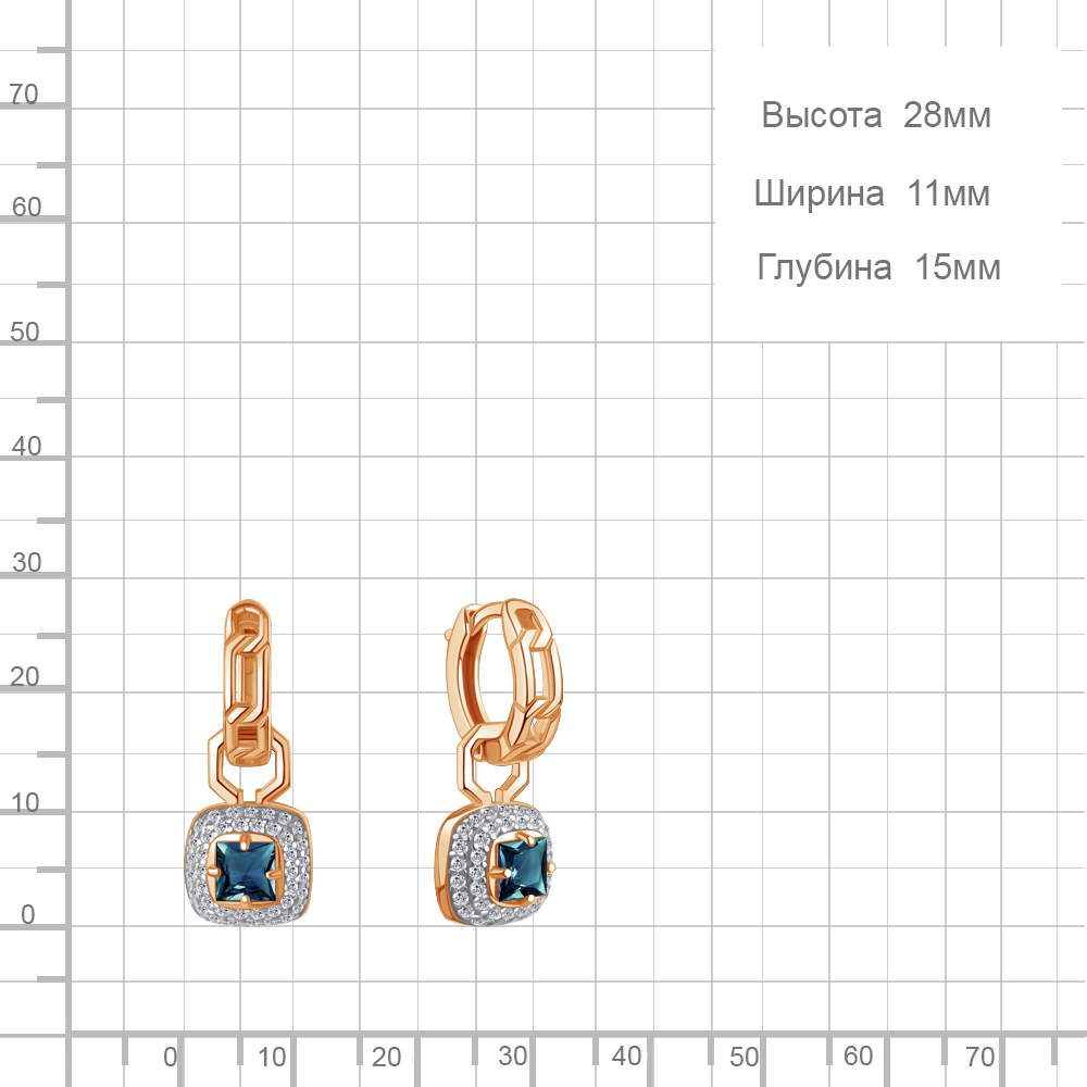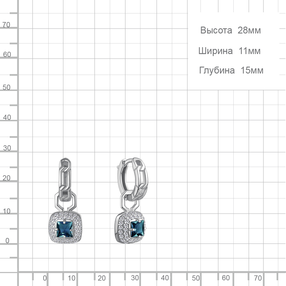 45012608А Серьги из Серебра с топазами лондон блю, фианитами