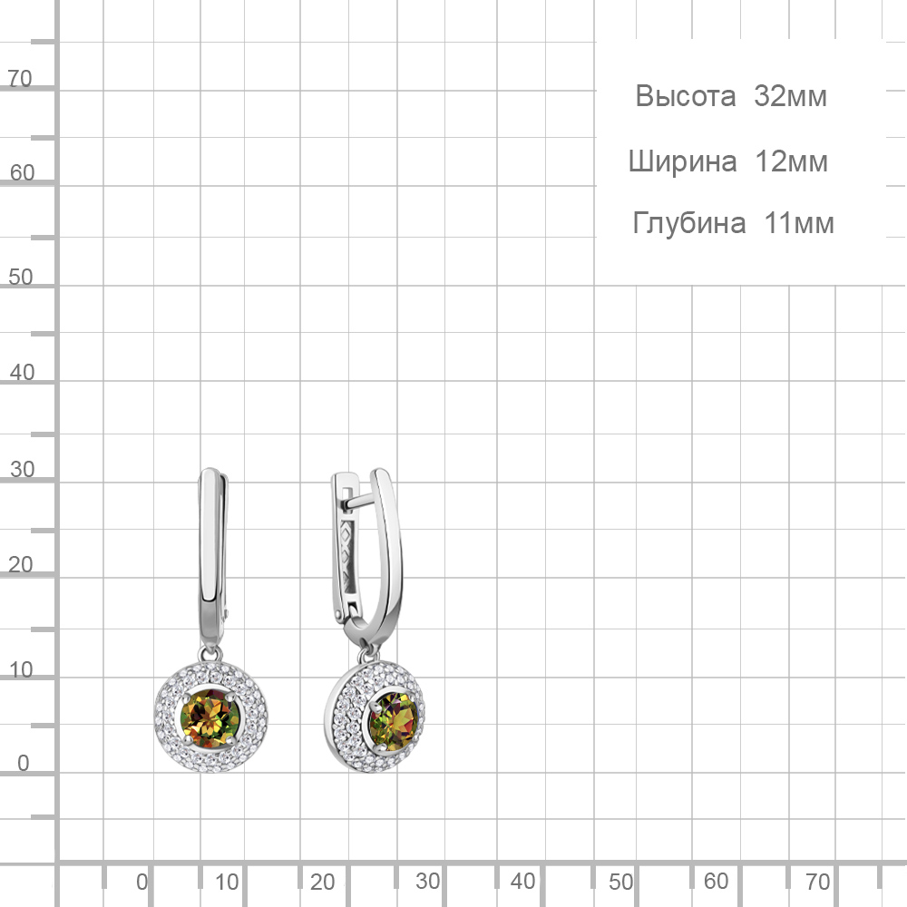 45013219А Серьги из Серебра с султанитами иск., фианитами