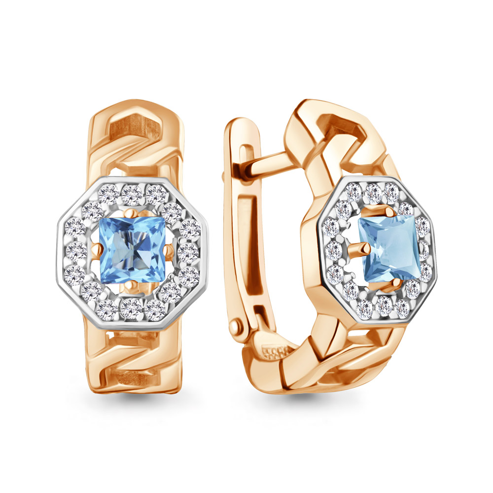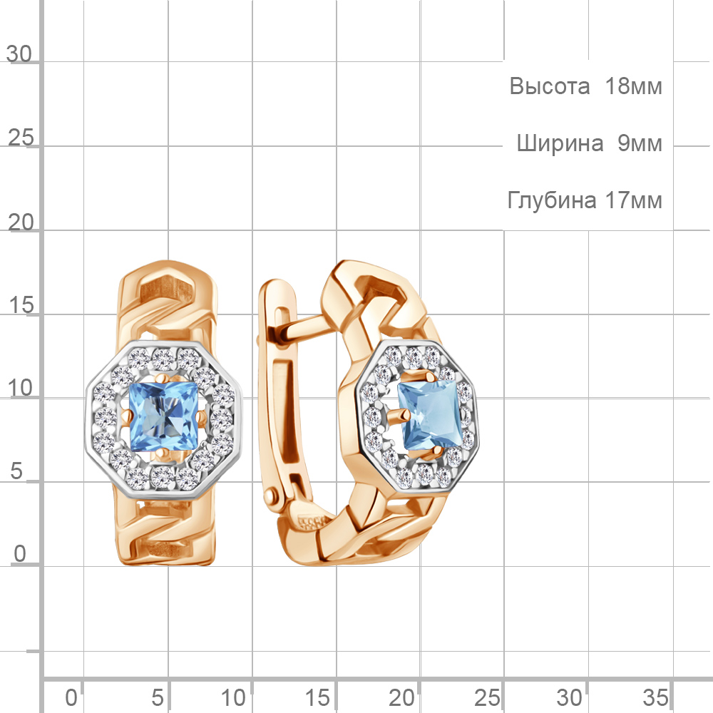 45013305А Серьги из Серебра с топазами свисс блю, фианитами