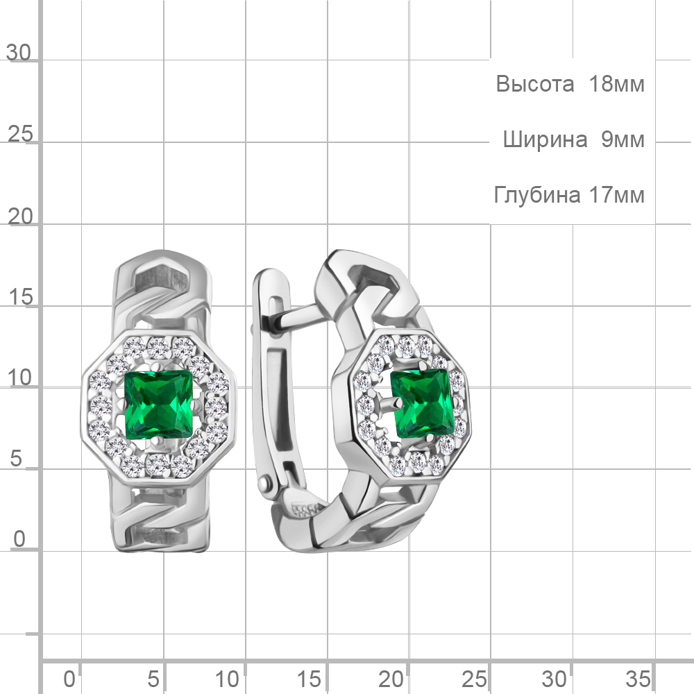 450133АГ Серьги из Серебра с наноизумрудами, фианитами
